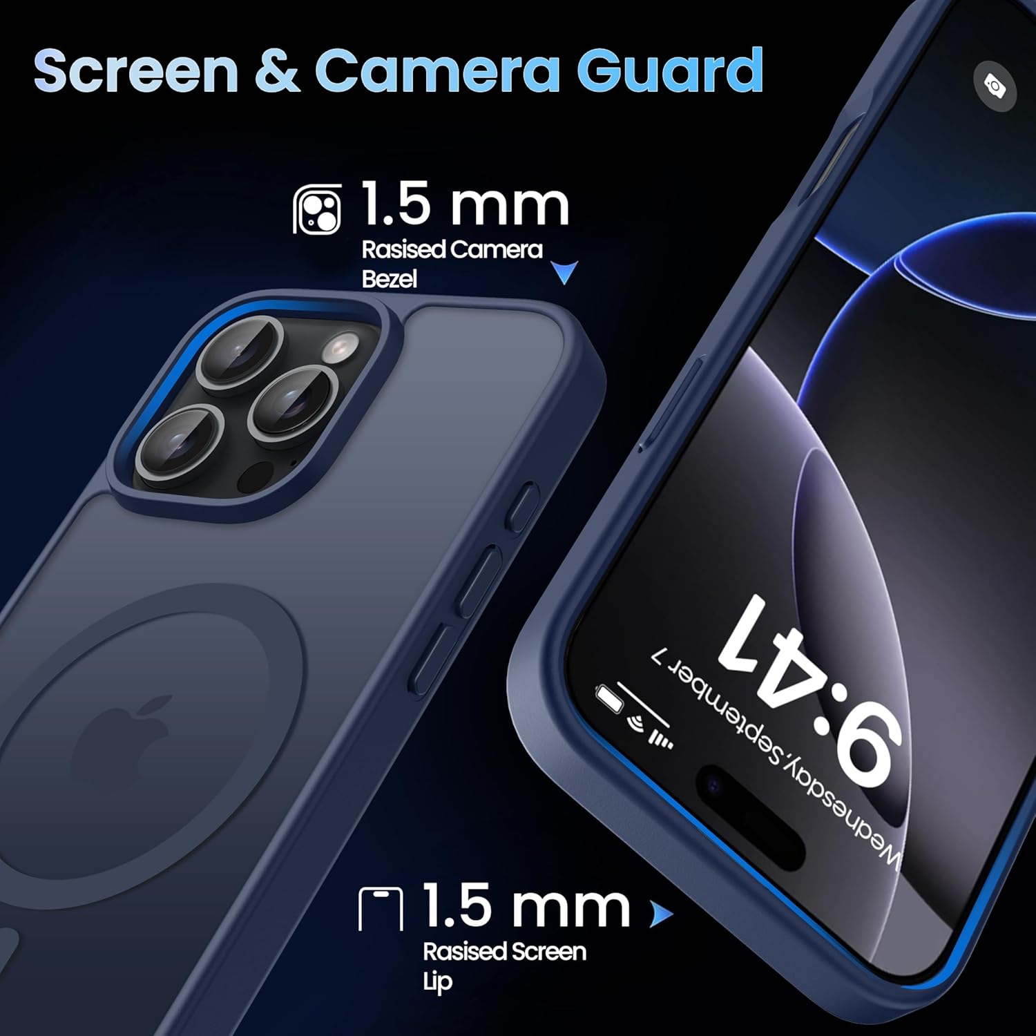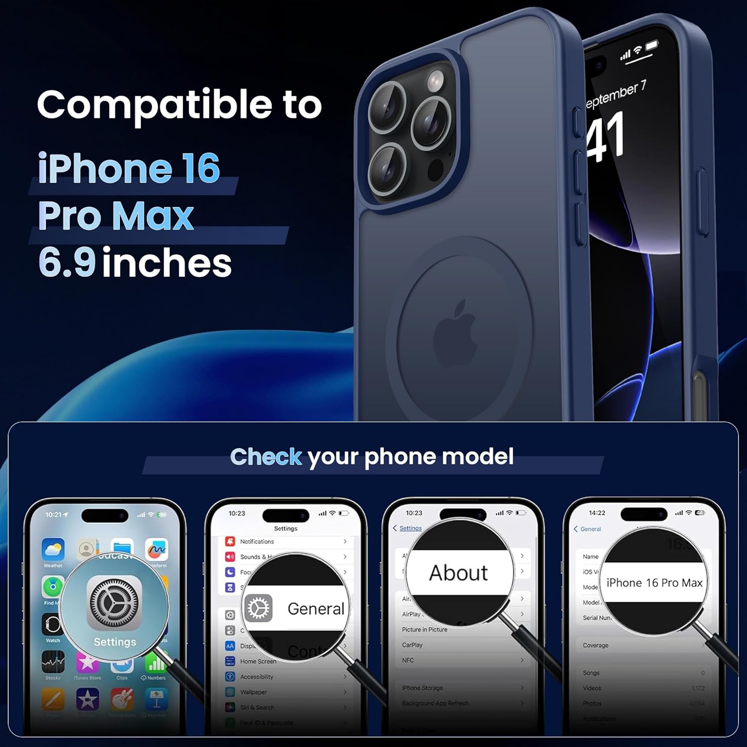 Калъф CACOE за iPhone 16 Pro Max със защита на камерата, съвместим с MagSafe, удароустойчив, устойчив на надраскване, магнитен гръб, калъф за мобилен телефон за iPhone 16 Pro Max, прозрачен калъф