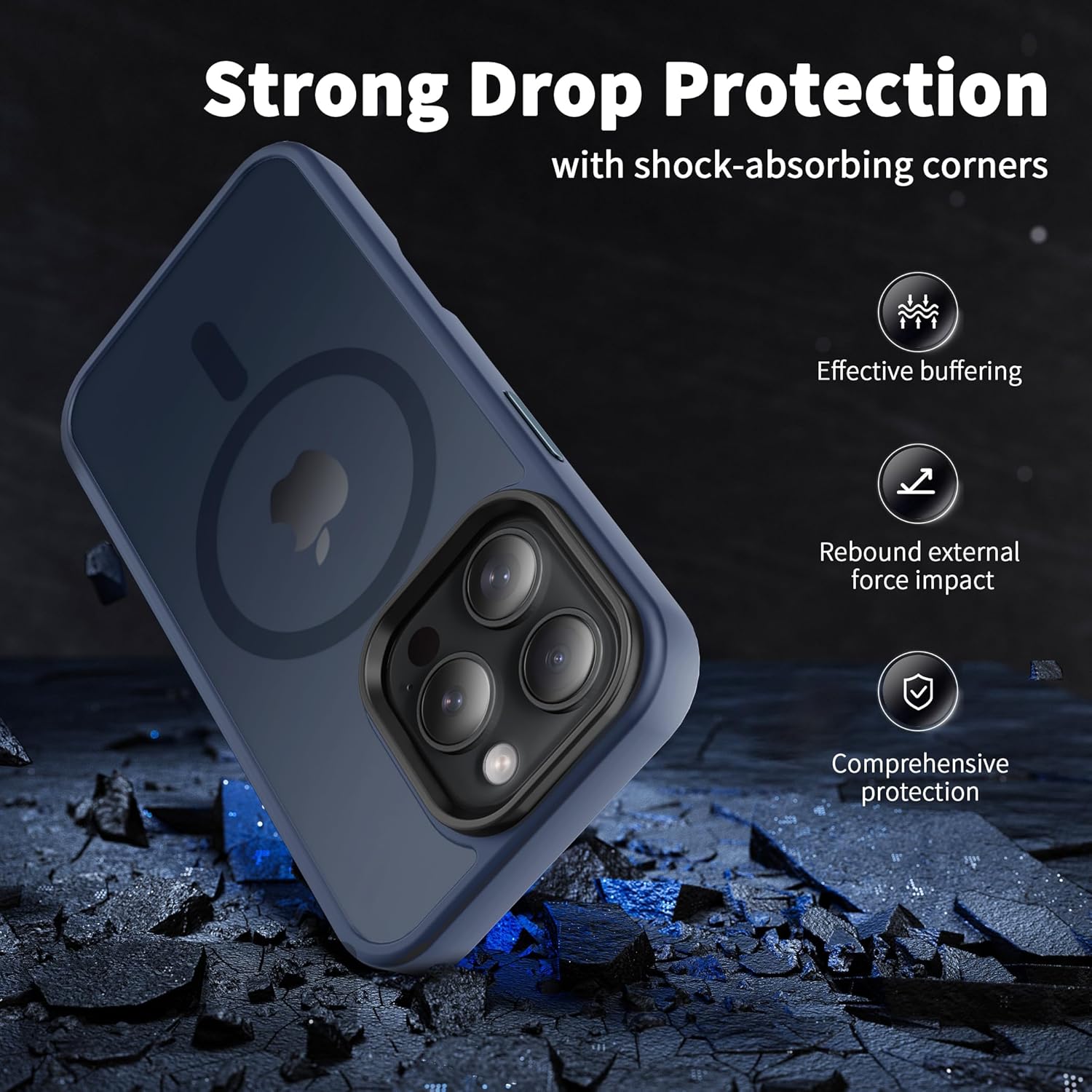 • Защита от 3 м, отговаряща на военни стандарти: Преминава тестове за падане и може да издържи на падания от височина до 3 м. Този матов заден капак за iPhone 15 е изработен от твърд поликарбонат (PC) с гъвкави, абсорбиращи ударите термопластични полиуретанови (TPU) подложки по краищата и разполага с четири въздушни възглавници в ъглите, които абсорбират ударите, предотвратявайки случайни падания, сблъсъци и надрасквания.