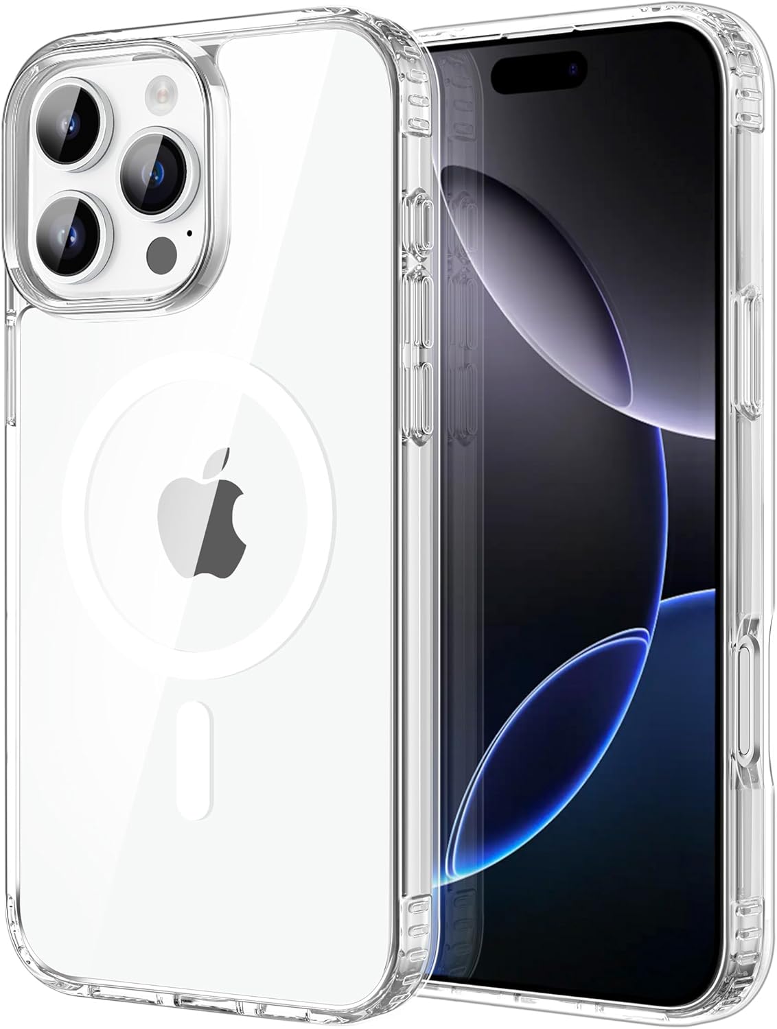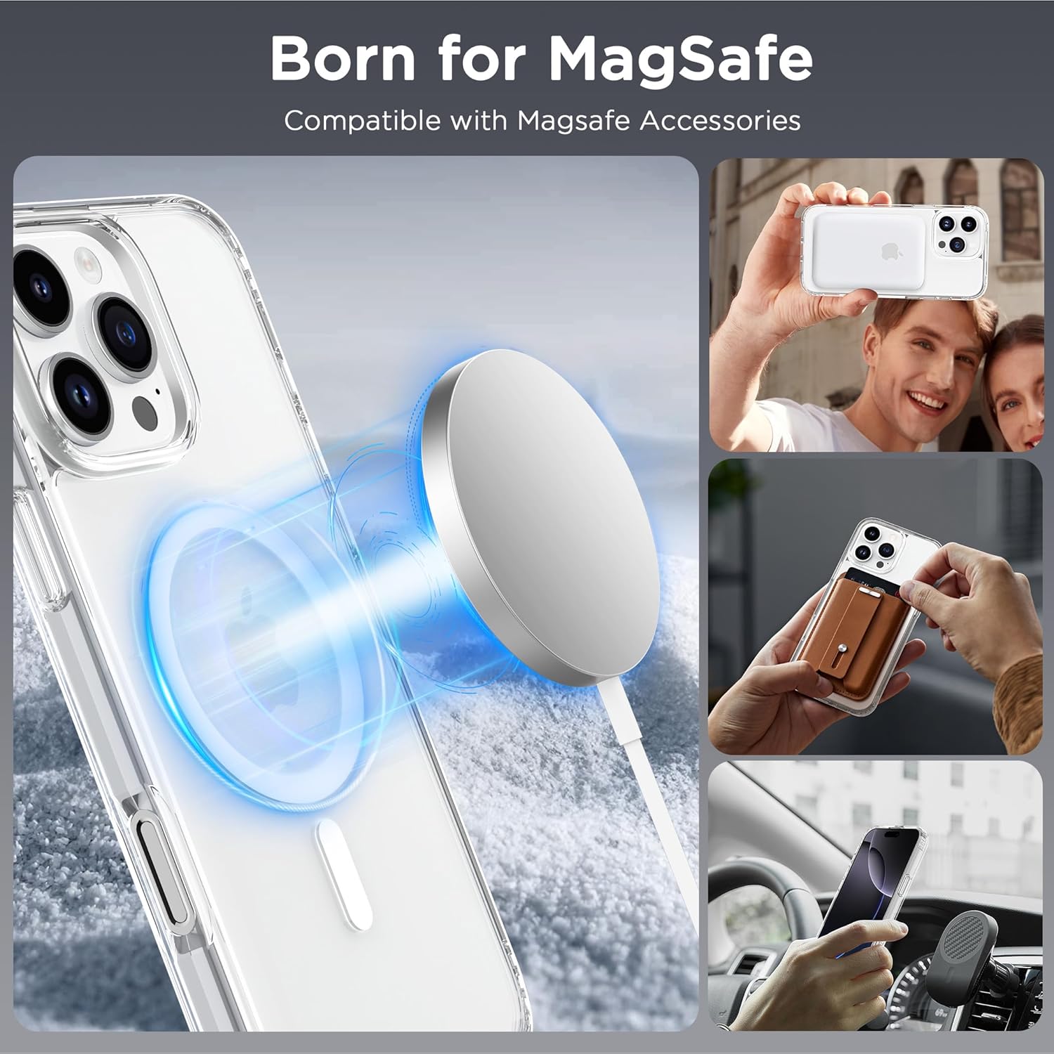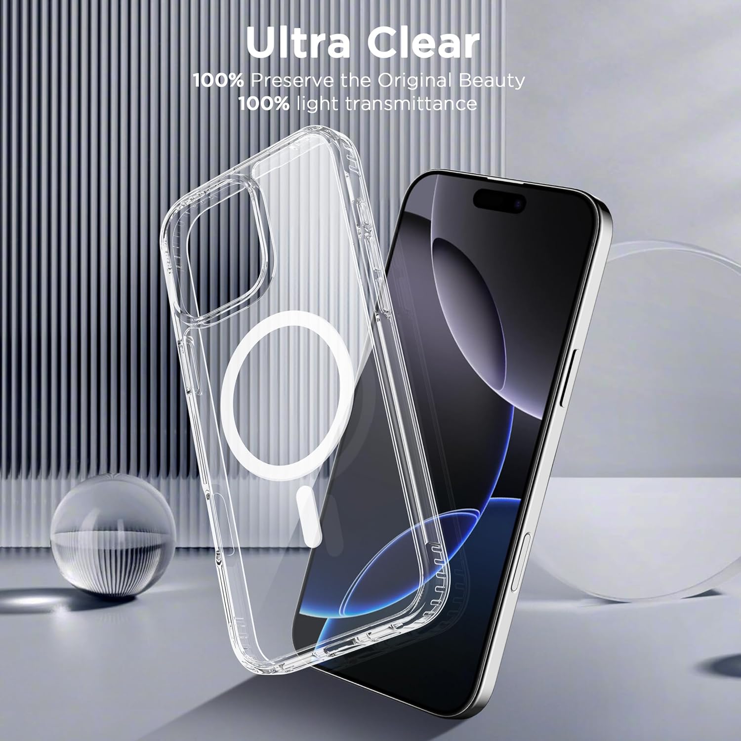 Калъф CACOE за iPhone 16 Pro със защита на камерата, съвместим с MagSafe, удароустойчив, устойчив на надраскване, магнитен гръб, калъф за мобилен телефон за iPhone 16 Pro, прозрачен калъф