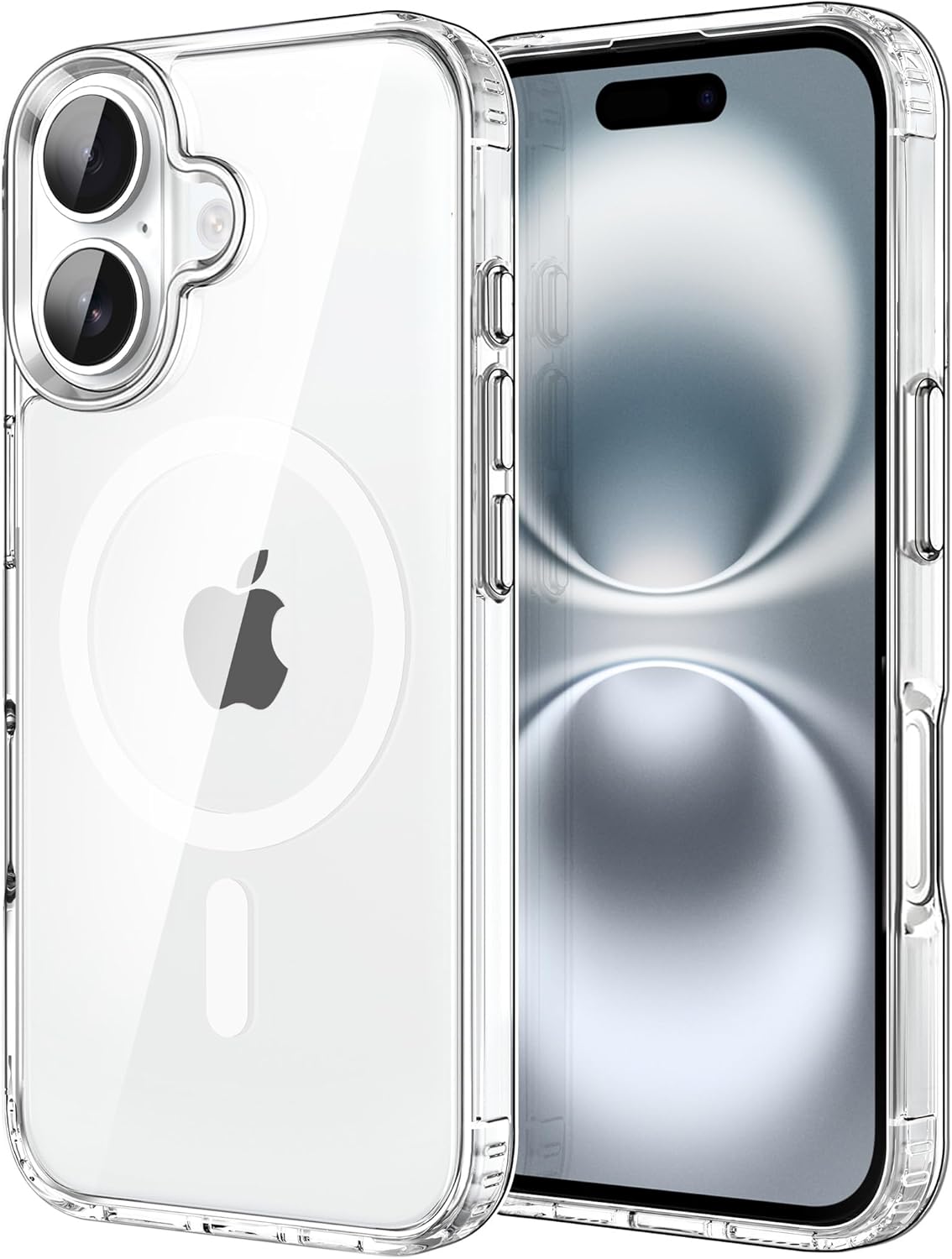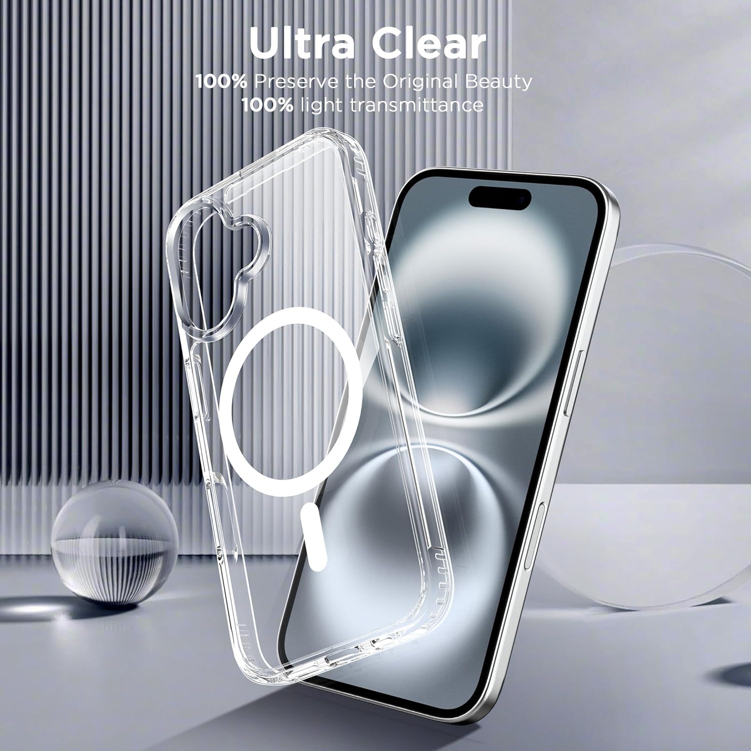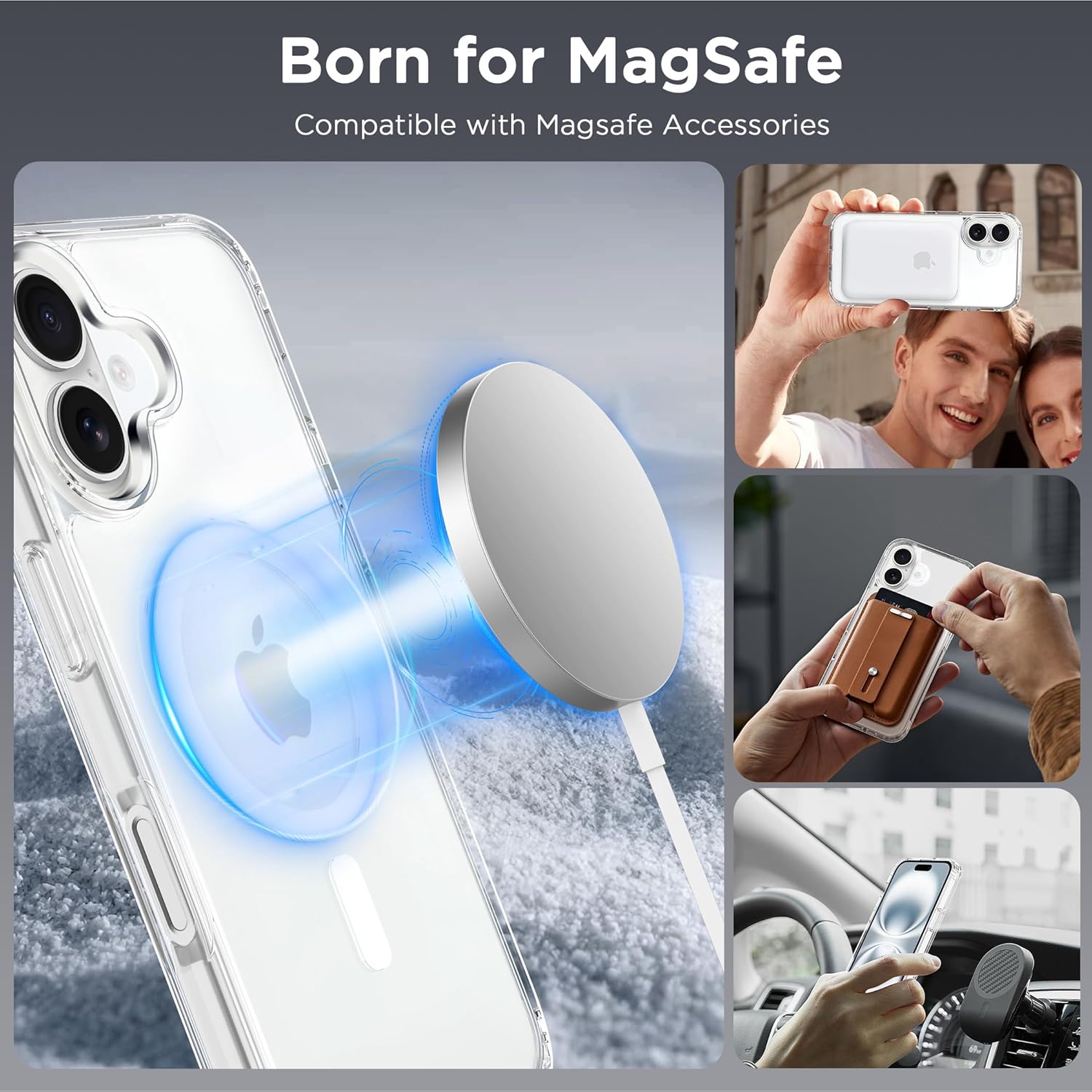 Калъф CACOE за iPhone 16 със защита на камерата, съвместим с MagSafe, удароустойчив, устойчив на надраскване, магнитен гръб, калъф за мобилен телефон за iPhone 16, прозрачен