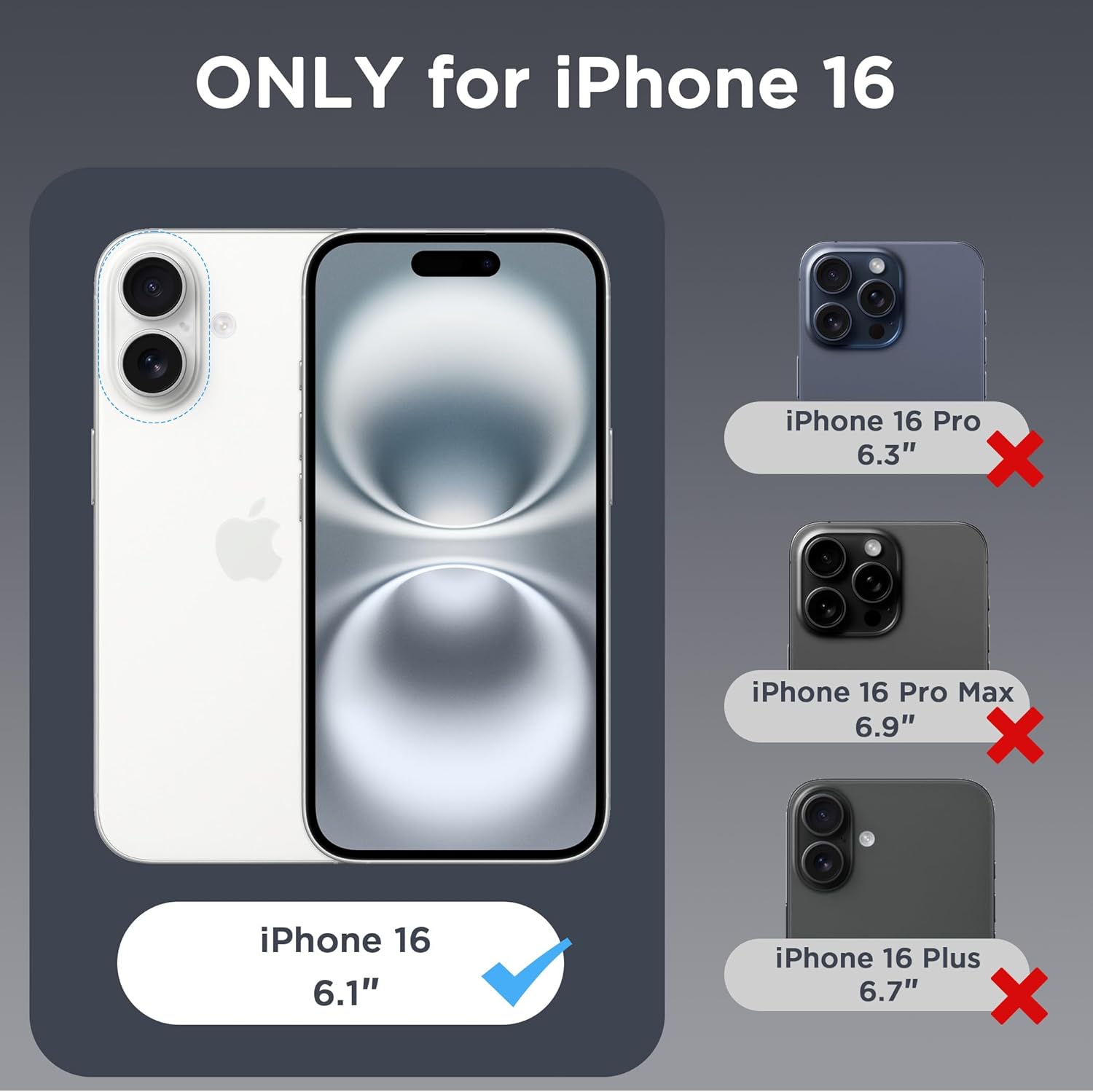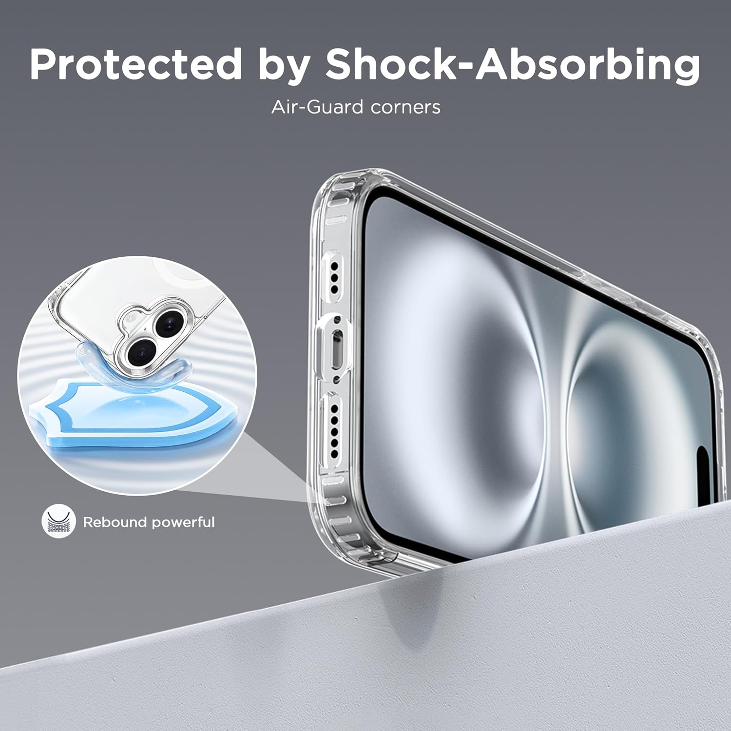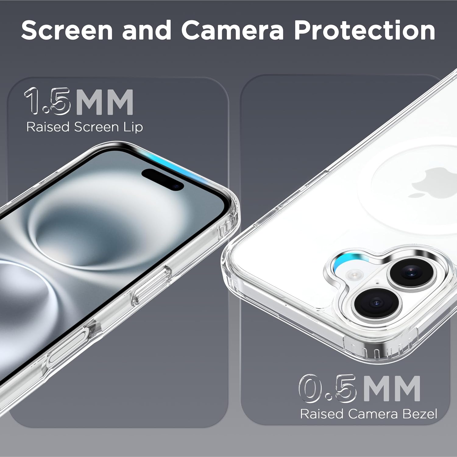 Калъф CACOE за iPhone 16 със защита на камерата, съвместим с MagSafe, удароустойчив, устойчив на надраскване, магнитен гръб, калъф за мобилен телефон за iPhone 16, прозрачен