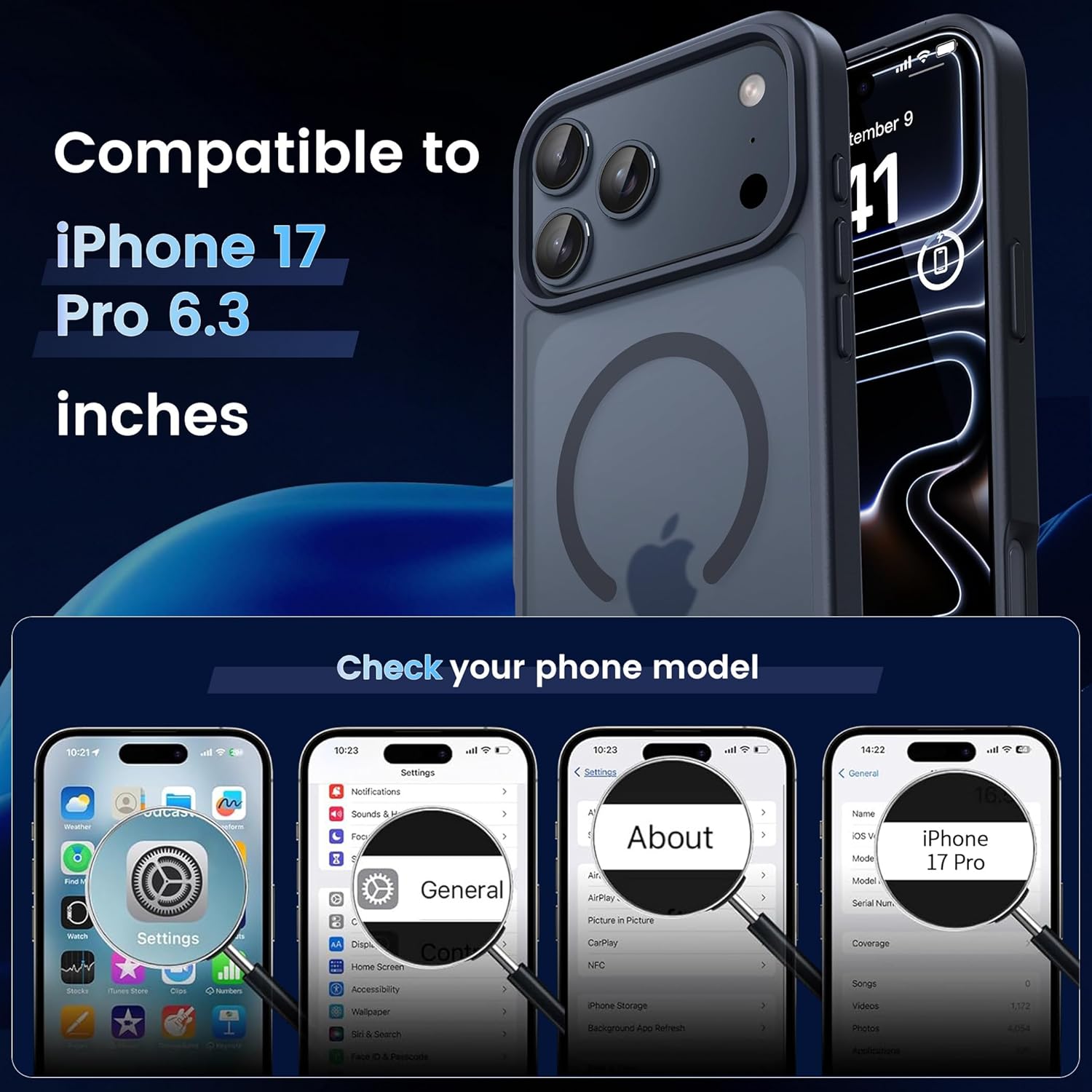 Калъф CACOE за iPhone 17 Pro със защита на камерата, съвместим с MagSafe, удароустойчив, устойчив на надраскване, магнитен гръб, калъф за мобилен телефон за iPhone 17 Pro, прозрачен