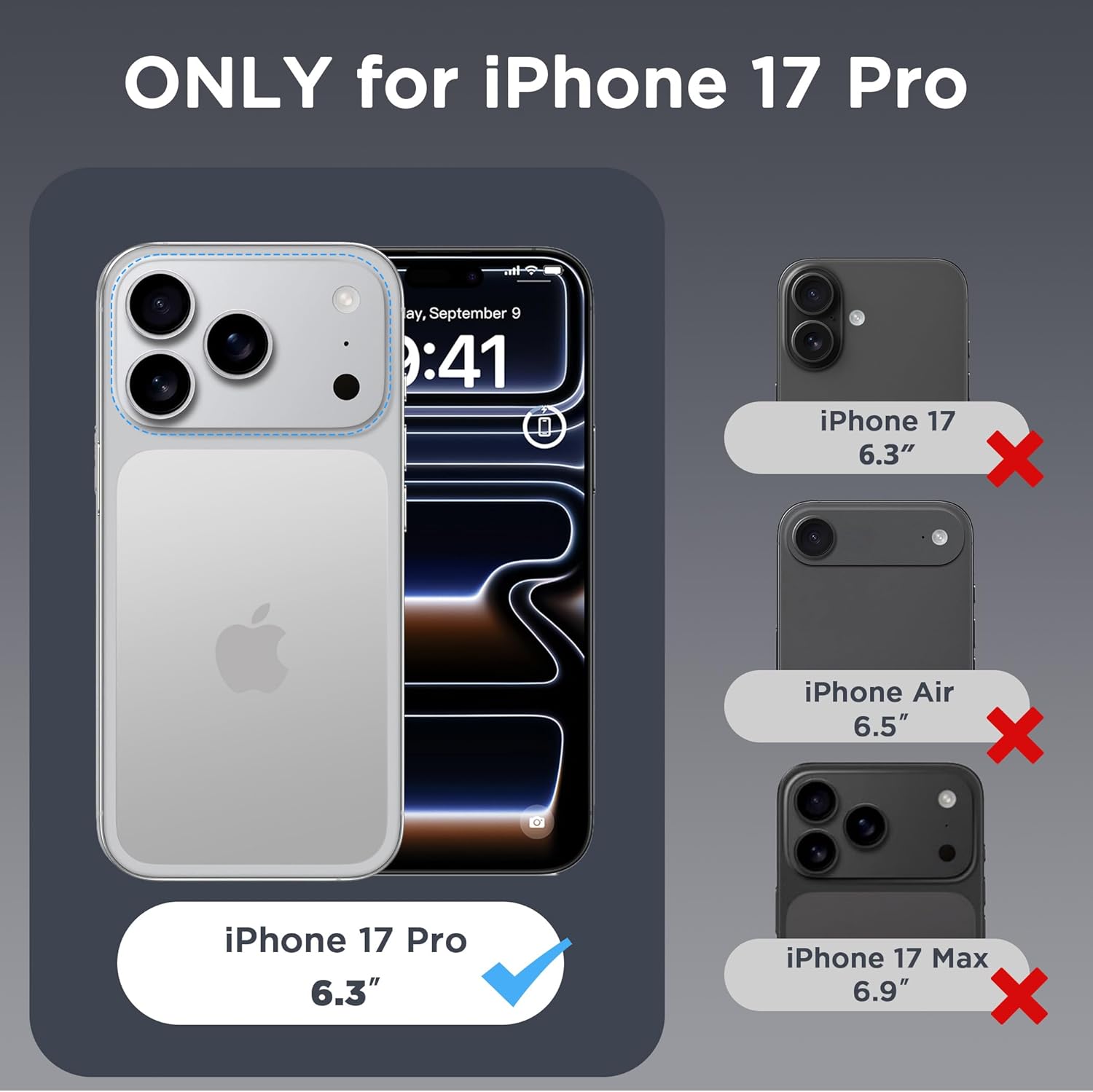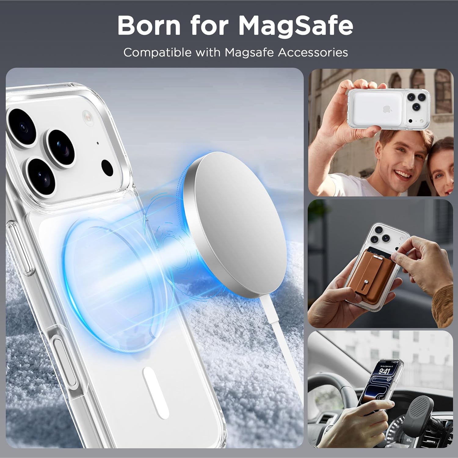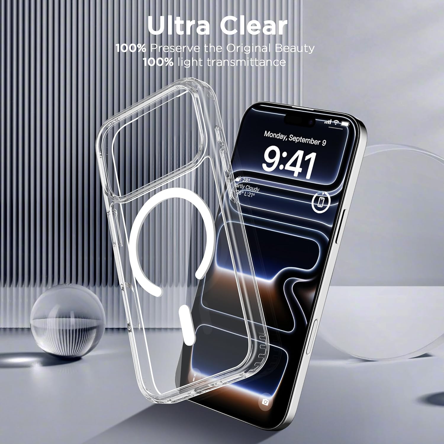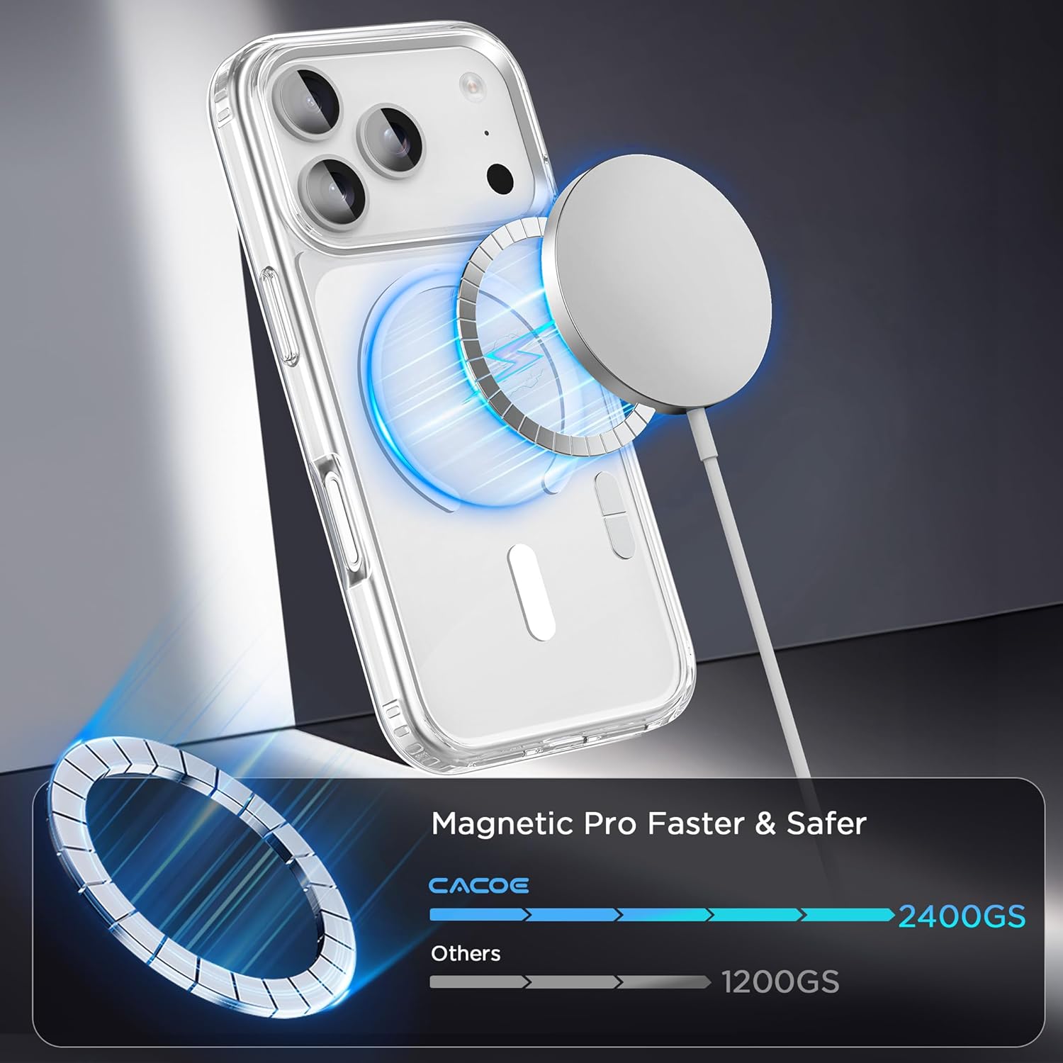 Калъф CACOE за iPhone 17 Pro със защита на камерата, съвместим с MagSafe, удароустойчив, устойчив на надраскване, магнитен гръб, калъф за мобилен телефон за iPhone 17 Pro, прозрачен