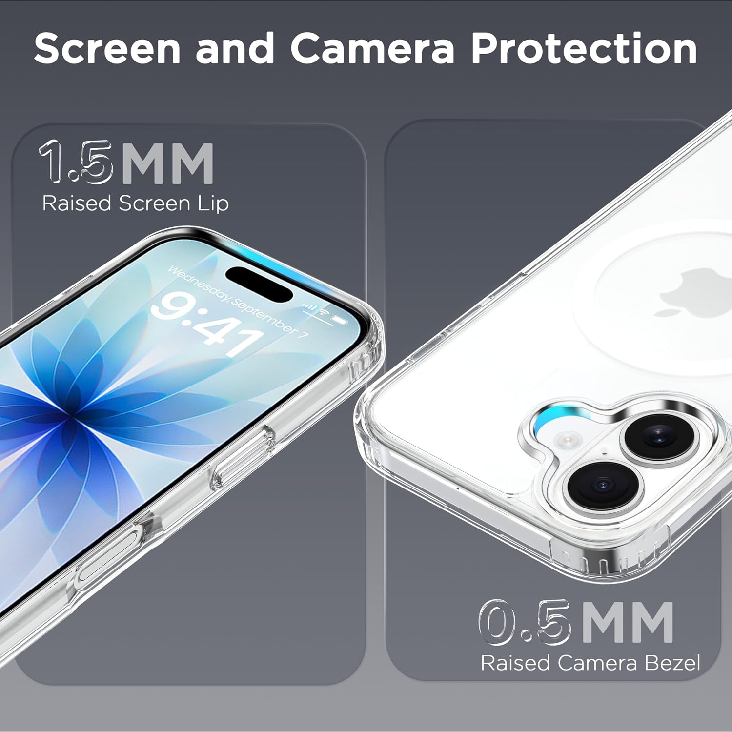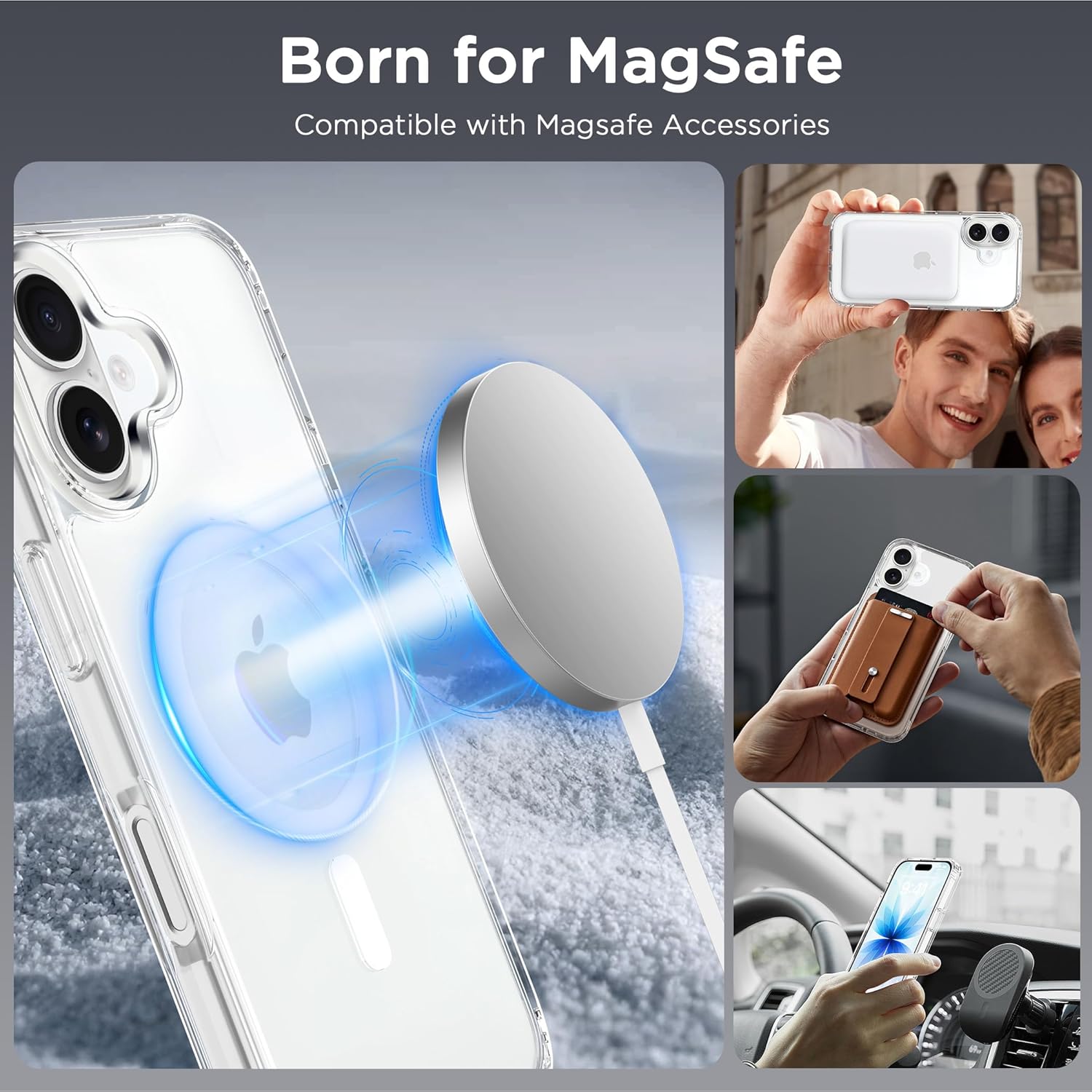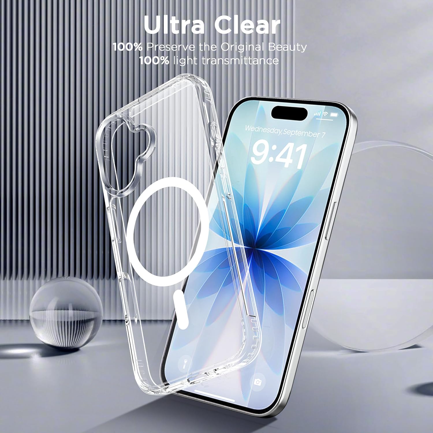 Калъф CACOE за iPhone 17 със защита на камерата, съвместим с MagSafe, удароустойчив, устойчив на надраскване, магнитен гръб, калъф за мобилен телефон за iPhone 17, прозрачен