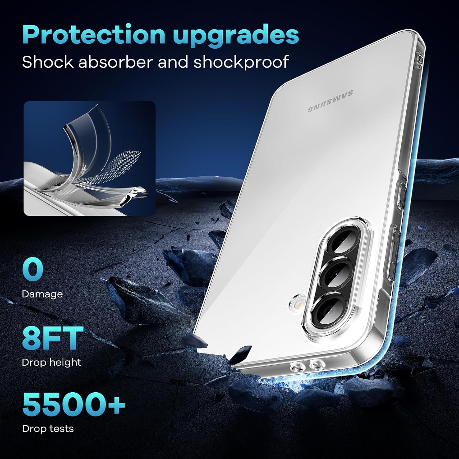 • Висококачествен TPU материал с анти-жълт цвят: изработен от TPU гел материал с анти-жълт цвят, този калъф за Samsung Galaxy A56 е много мек и удобен за хващане. Той осигурява най-добрата защита за вашето устройство (ефективно избягвайки надрасквания по гърба). Специалният дизайн, абсорбиращ ударите в 4-те ъгъла, ефективно абсорбира ударите и сътресенията.