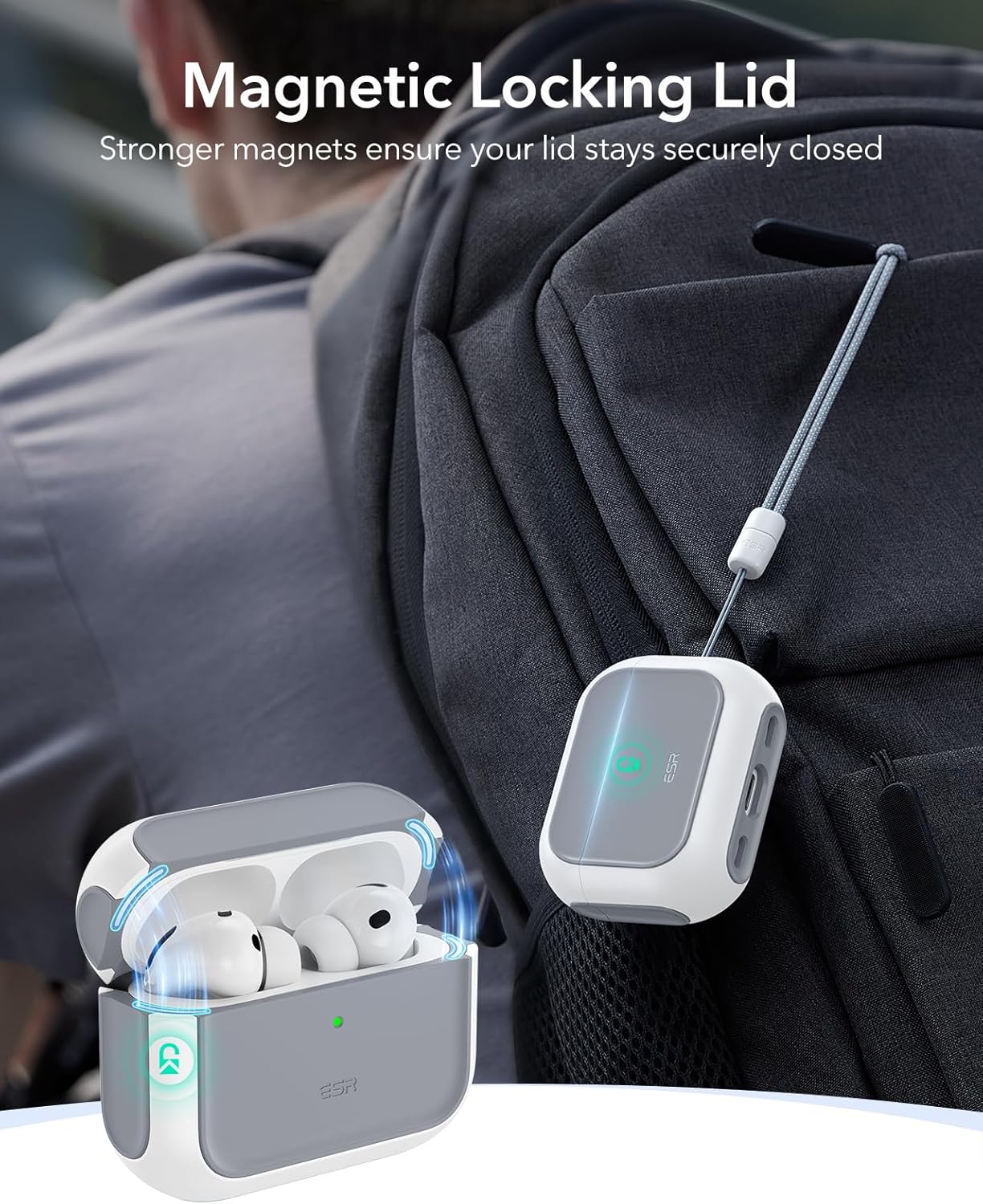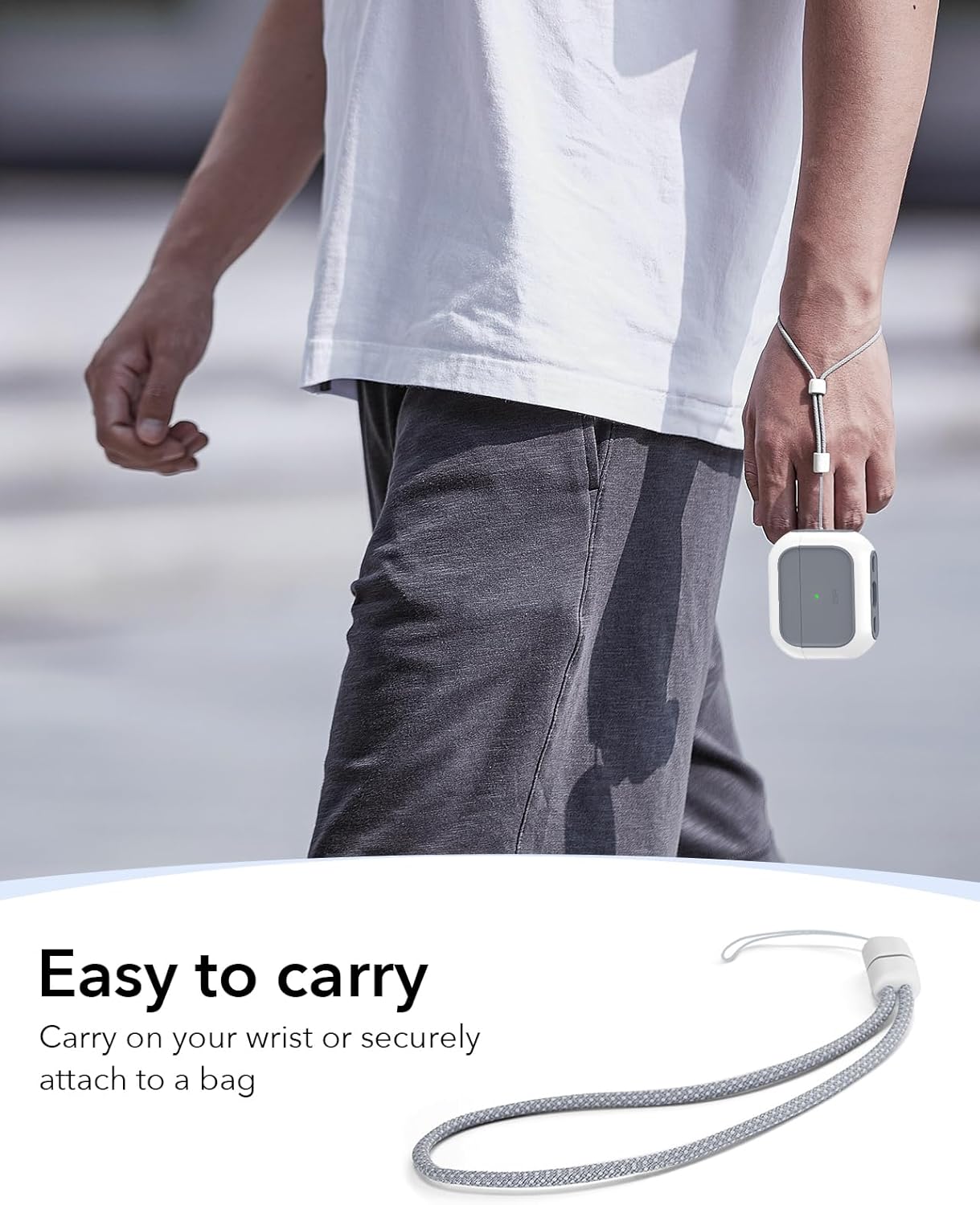 Калъф ESR AirPods Pro 3, съвместим с AirPods Pro 3-то поколение (2025), съвместим с MagSafe, калъф с пълна защита и каишка за китка, бял