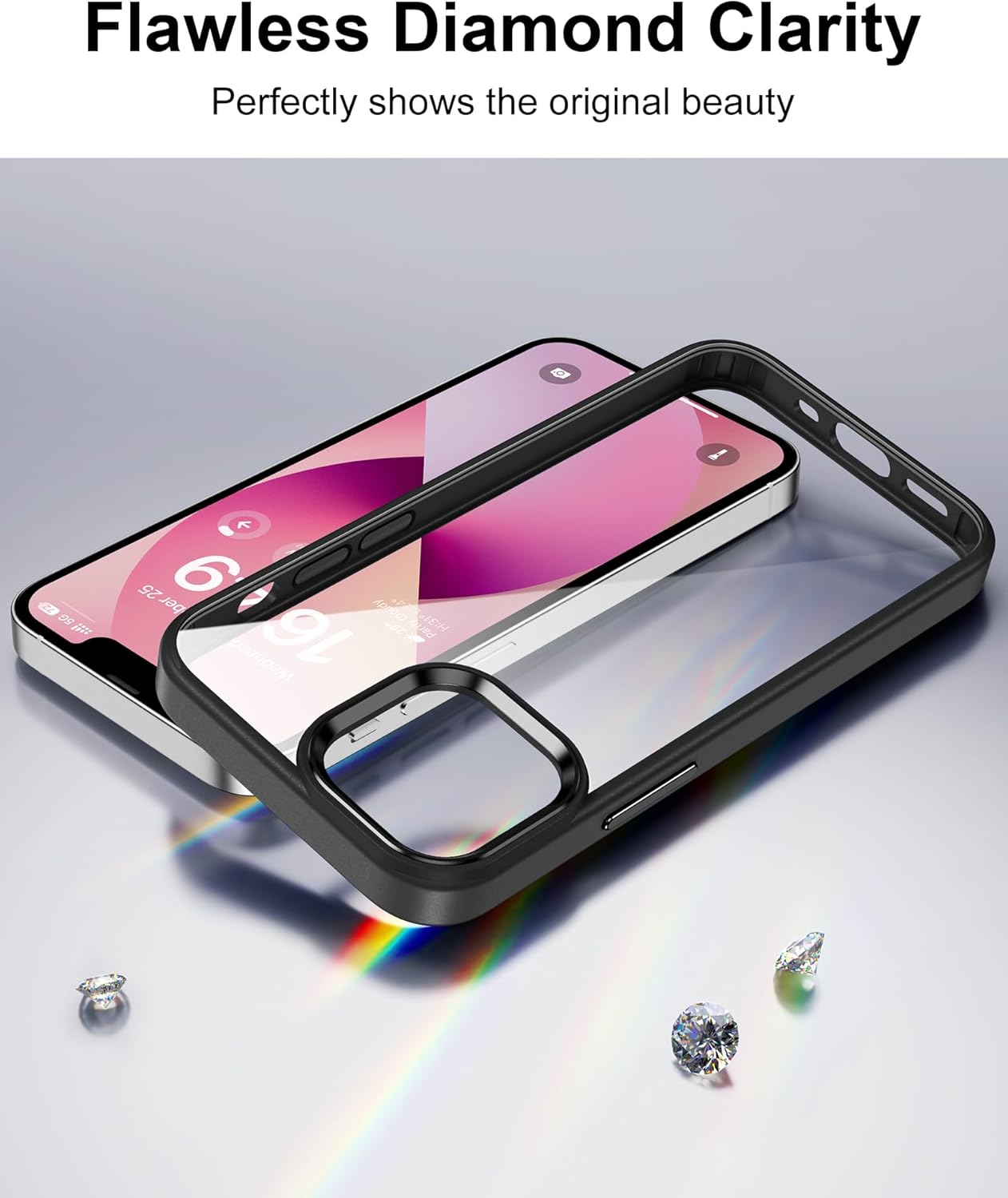 Калъф HOOMIL Crystal Clear за iPhone 13 Mini 5.4 инча, прозрачен, никога не пожълтява - черен