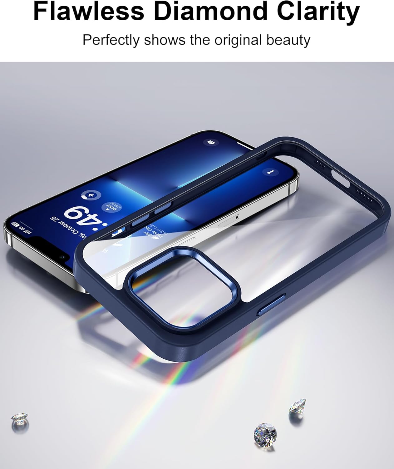 Калъф HOOMIL Crystal Clear за iPhone 13 Pro Max 6.7 инча, никога не пожълтява, прозрачен - син