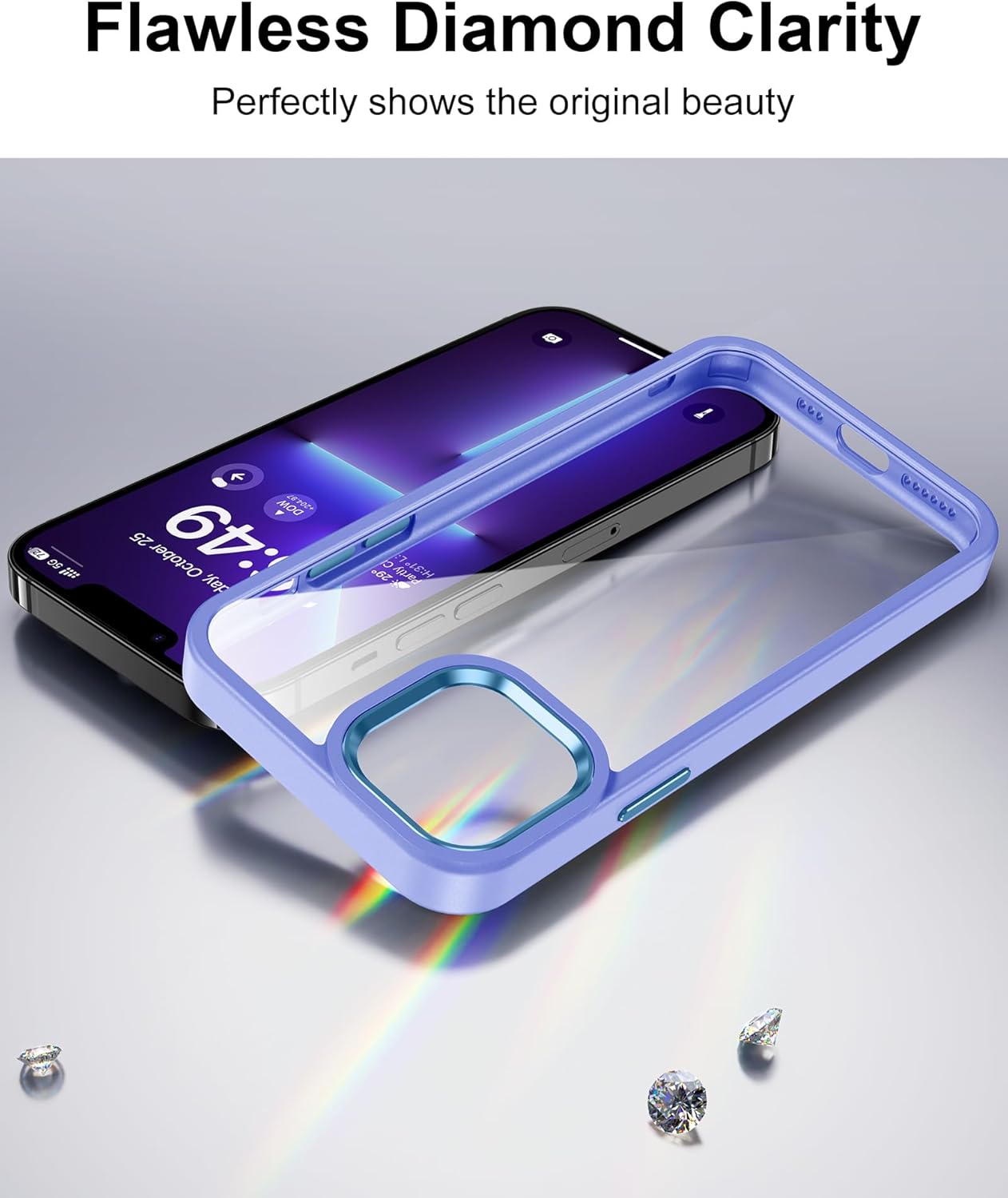 Калъф HOOMIL Crystal Clear за iPhone 13 Pro Max 6.7 инча, никога не пожълтява, прозрачен - светло лилав