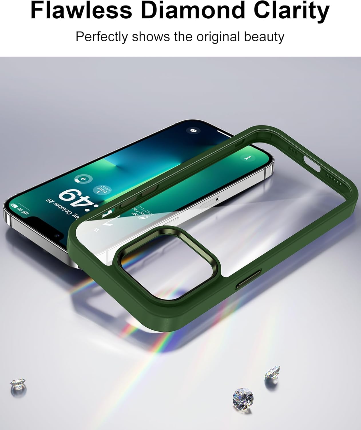 Калъф HOOMIL Crystal Clear за iPhone 13 Pro Max 6.7 инча, никога не пожълтява, прозрачен - зелен