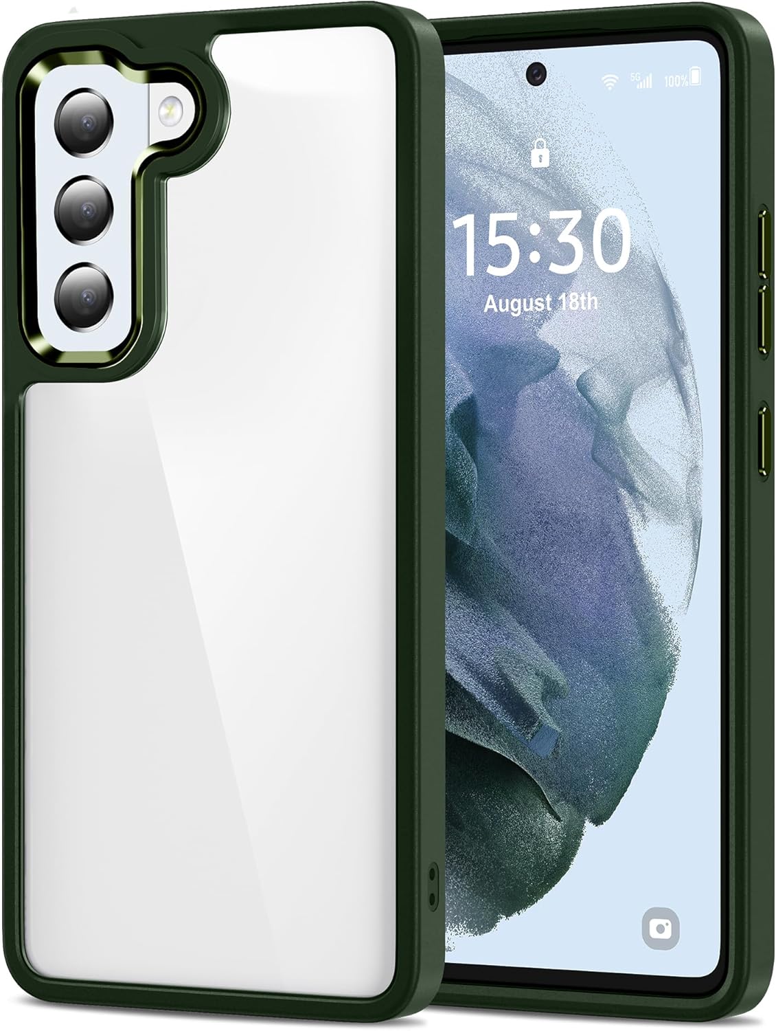 Калъф HOOMIL Crystal Clear за Samsung Galaxy S21 5G 6.2 инча, никога не пожълтява, прозрачен - зелен