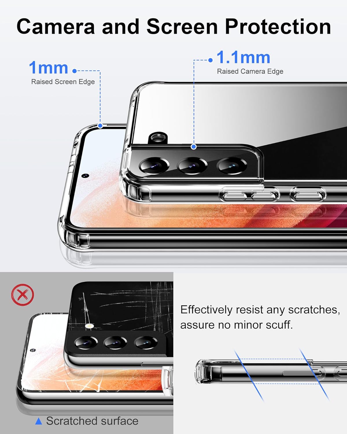 • Стандартна военна защита: уникален удароустойчив дизайн; 4-те ъгъла ефективно абсорбират ударите, а повдигнатите ръбове напълно предпазват екрана и камерата от падане върху плоски повърхности.