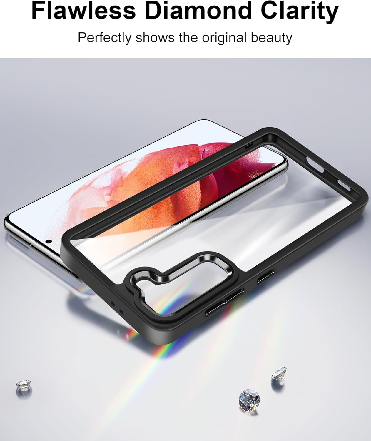 Калъф HOOMIL Crystal Clear за Samsung Galaxy S21 5G 6.2 инча, никога пожълтяващ, прозрачен, черен
