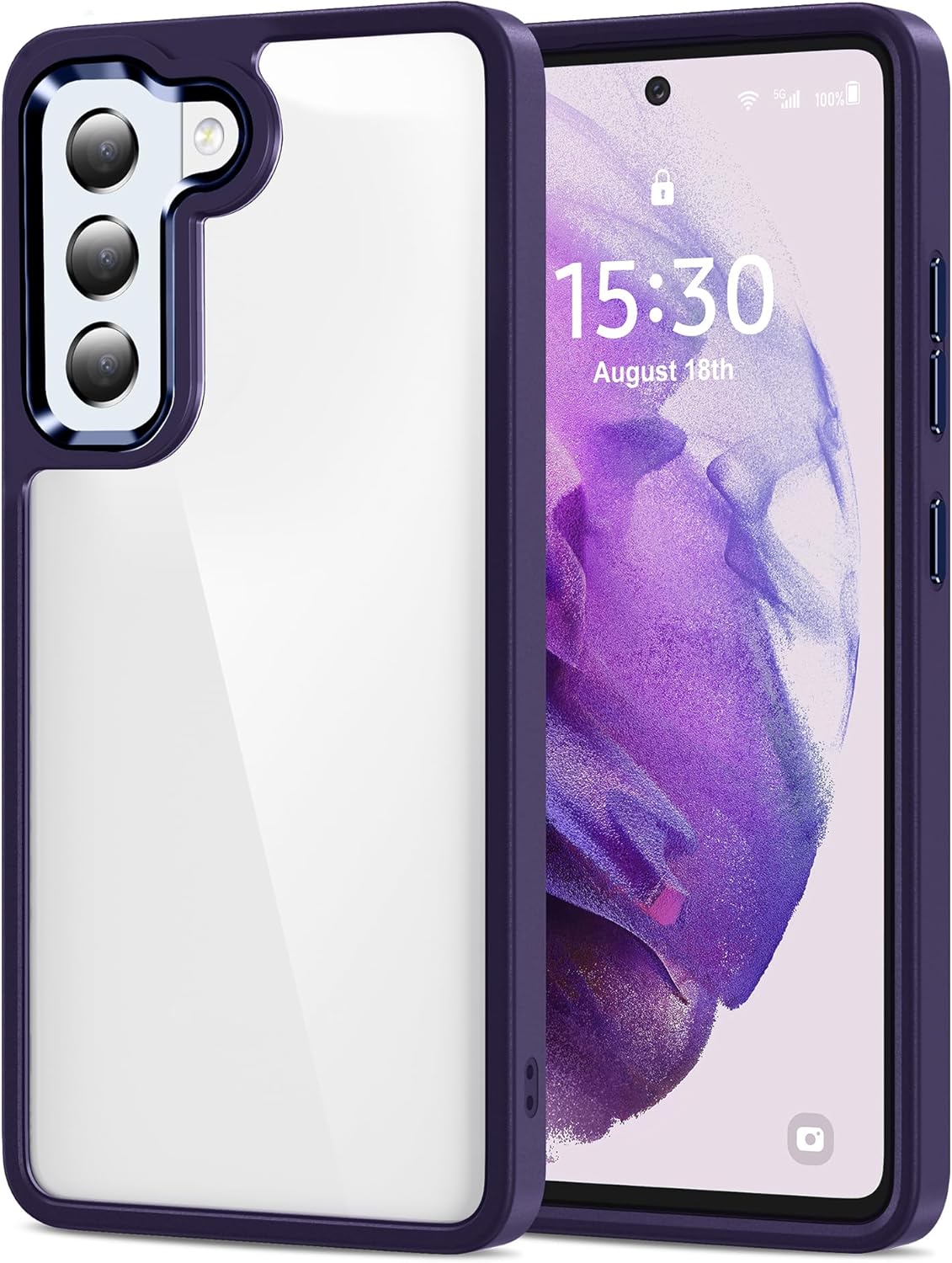 Калъф HOOMIL Crystal Clear за Samsung Galaxy S21+ Plus 5G 6.7 инча, никога не пожълтява, прозрачен - лилав
