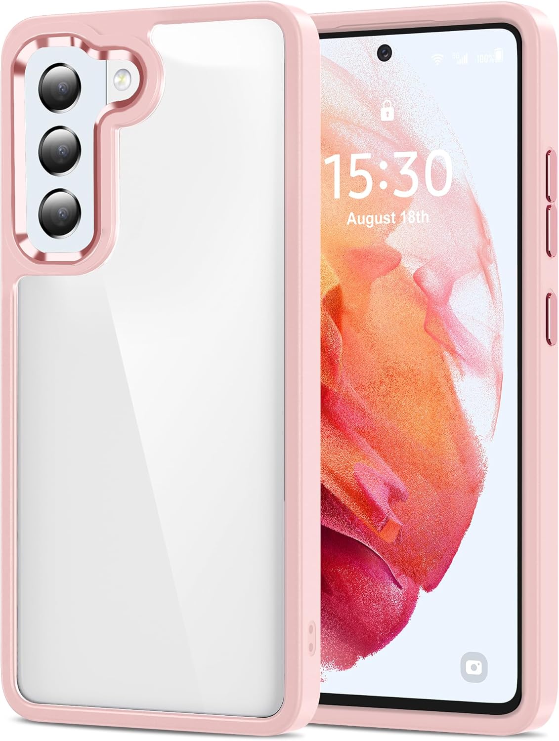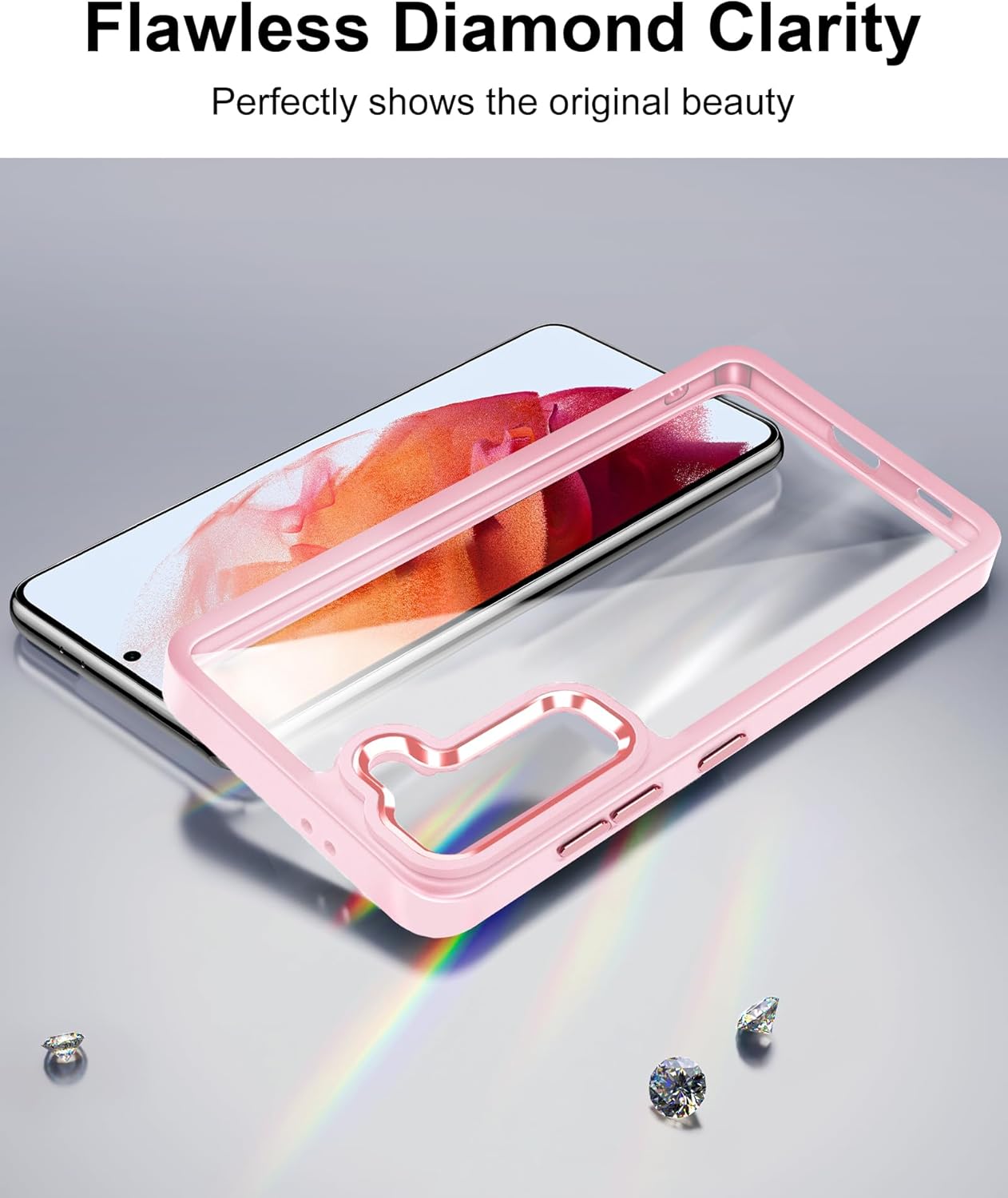 Калъф HOOMIL Crystal Clear за Samsung Galaxy S21+ Plus 5G 6.7 инча, никога не пожълтява, прозрачен - светло розов