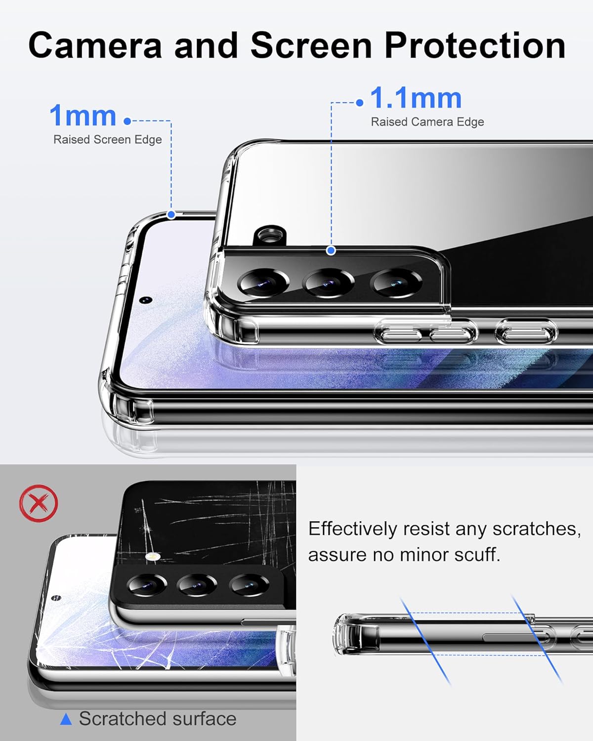 • Стандартна военна защита: уникален удароустойчив дизайн; 4-те ъгъла ефективно абсорбират ударите, а повдигнатите ръбове напълно предпазват екрана и камерата от падане върху плоски повърхности.