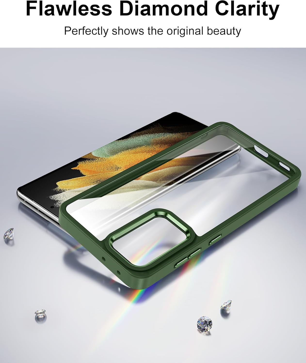 Калъф HOOMIL Crystal Clear за Samsung Galaxy S21 Ultra 5G 6.8 инча, никога не пожълтява, прозрачен, тъмнозелен