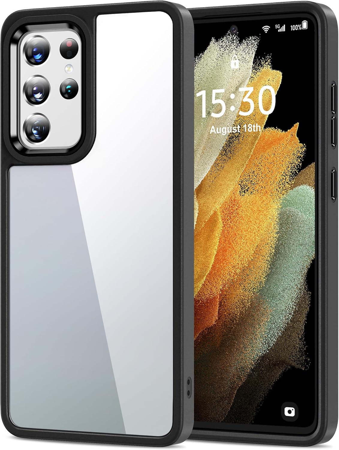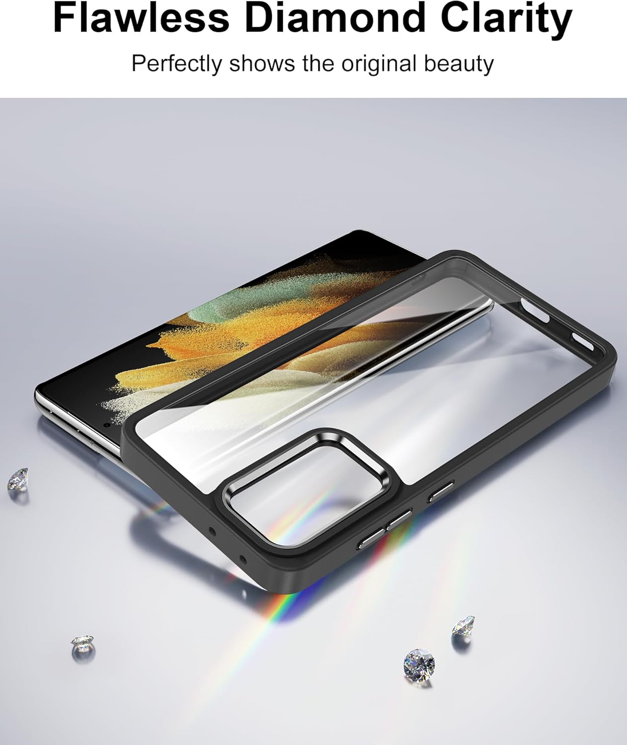 Калъф HOOMIL Crystal Clear за Samsung Galaxy S21 Ultra 5G 6.8 инча, прозрачен, никога не пожълтява - черен