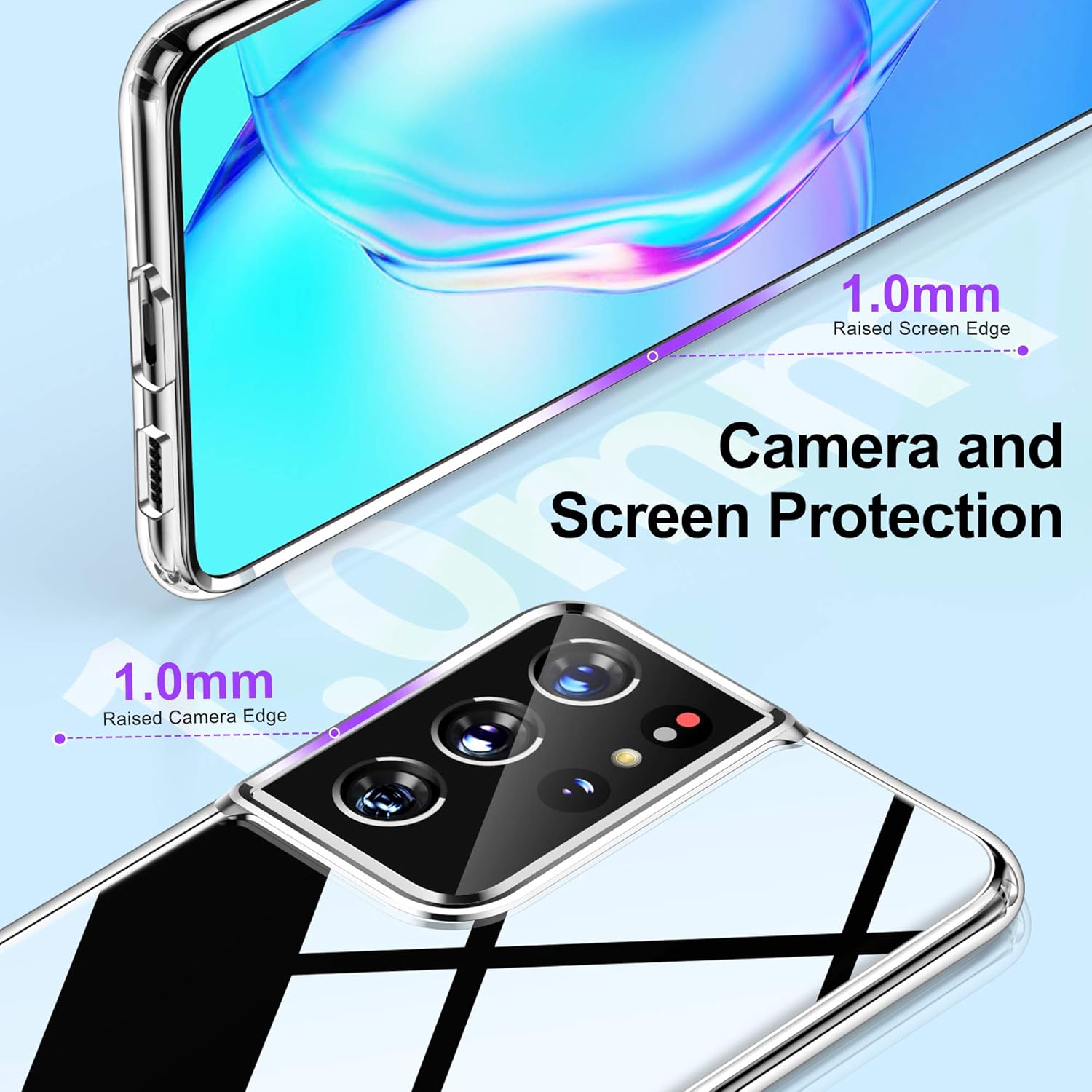 • Стандартна военна защита: уникален удароустойчив дизайн; 4-те ъгъла ефективно абсорбират ударите, а повдигнатите ръбове напълно предпазват екрана и камерата от падане върху плоски повърхности.