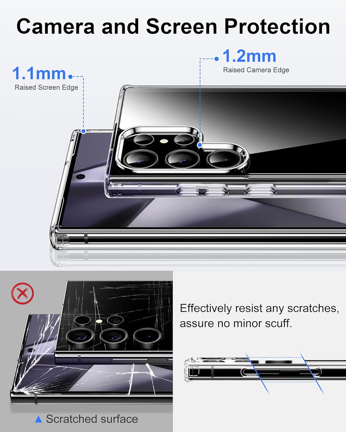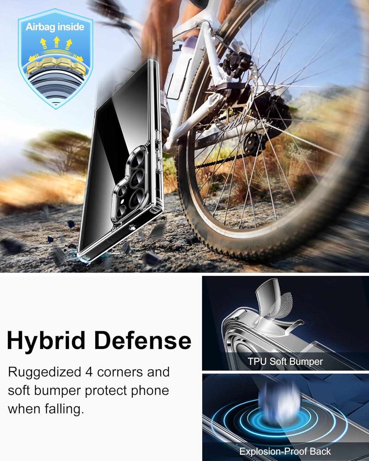 • Стандартна военна защита: уникален удароустойчив дизайн; 4-те ъгъла ефективно абсорбират ударите, а повдигнатите ръбове напълно предпазват екрана и камерата от падане върху плоски повърхности.