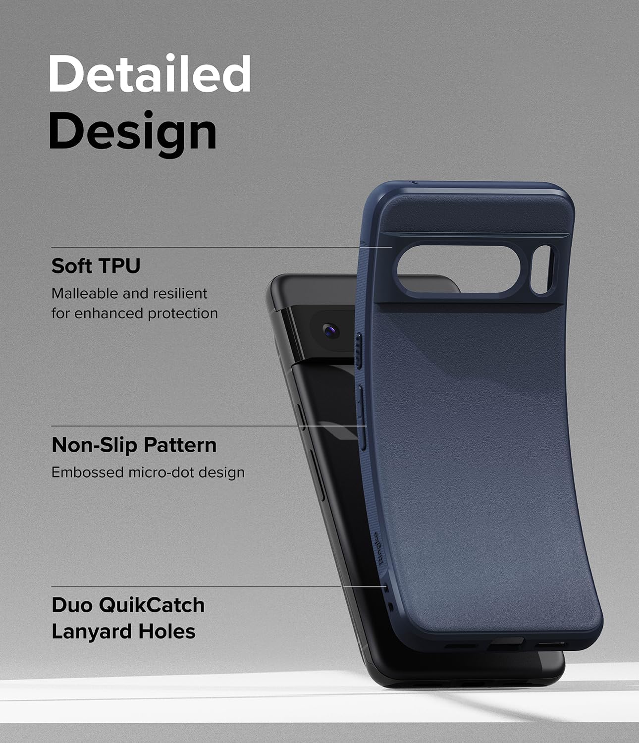 Калъф Ringke Onyx за Google Pixel 8 Pro, [Grippy] Неплъзгащ се, Удароустойчив, Устойчив на надраскване, Перфектно прилягащ, Стилен калъф за мобилен телефон с прецизни изрези за камерата - Тъмносин