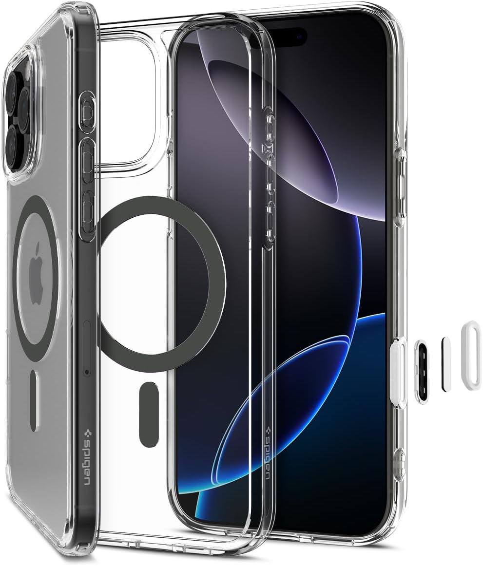 Калъф Spigen Camera Control Button за iPhone 16 Pro, Калъф с активирано управление на камерата, Ultra Hybrid T MagFit, Против пожълтяване, Калъф за мобилен телефон с бутон за камера, съвместим с MagSafe, Графит