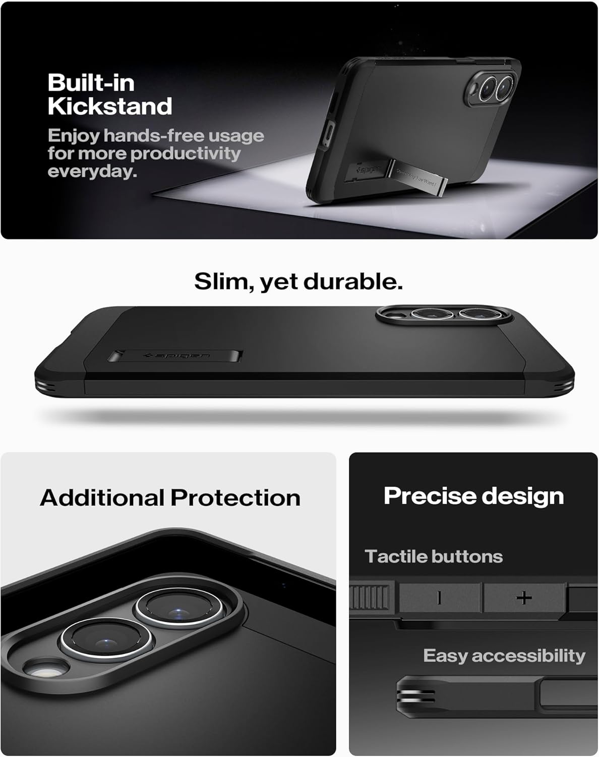 • Вградена стойка за изправяне на мобилния ви телефон