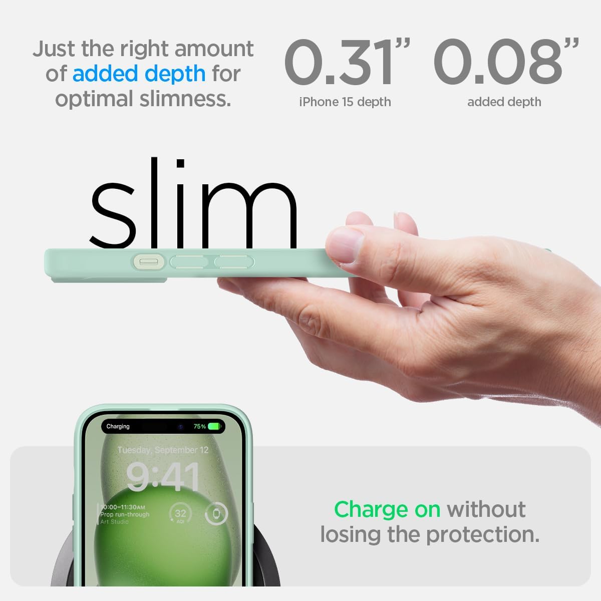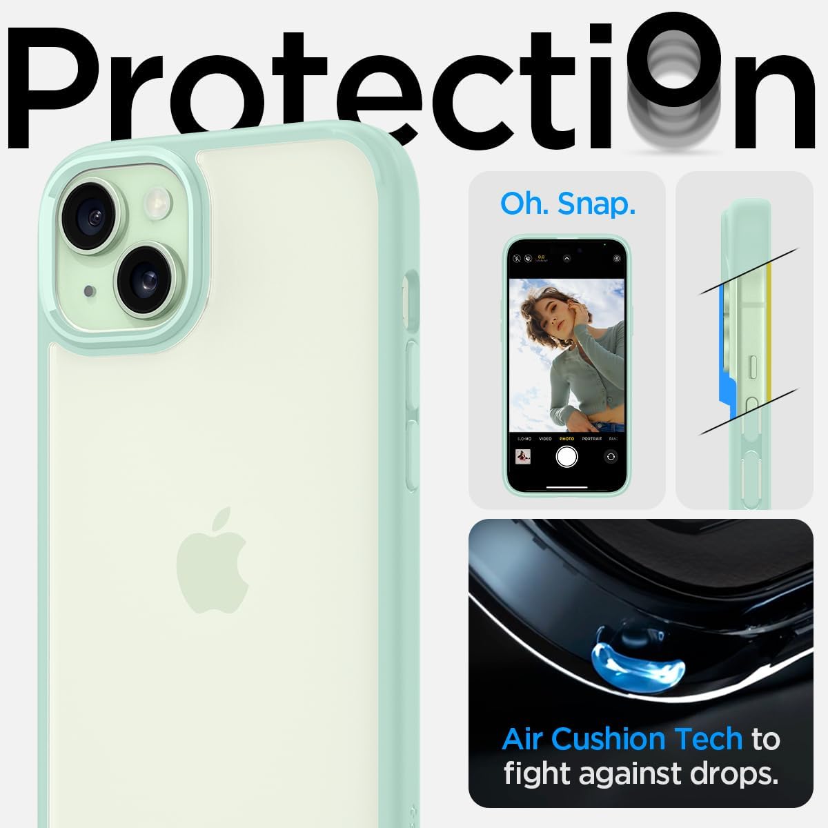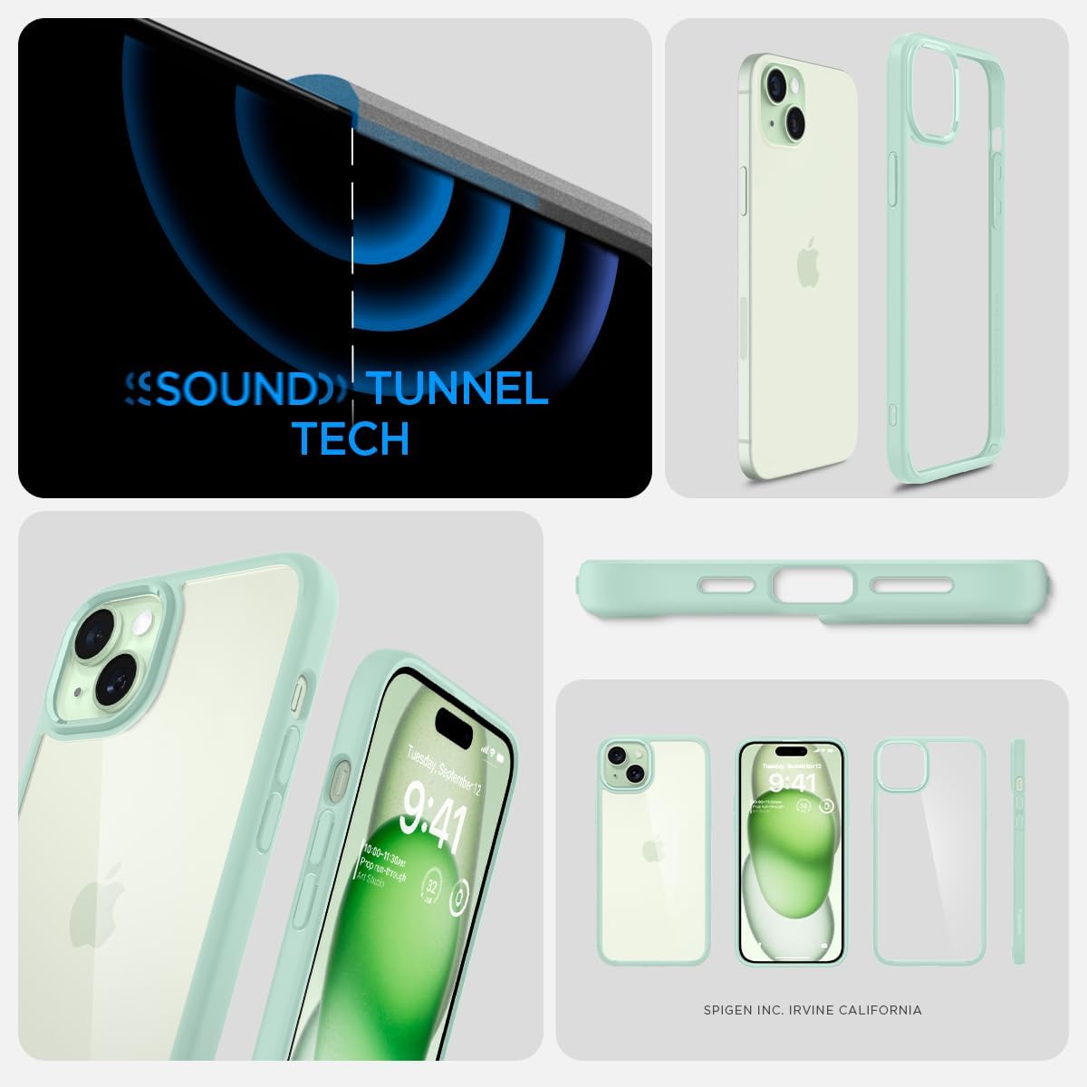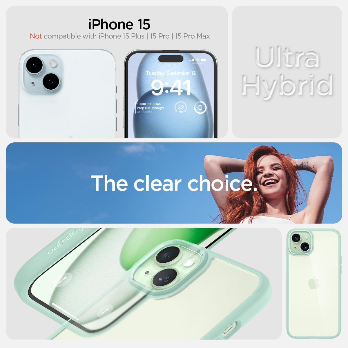 Калъф Spigen за iPhone 15 Ultra Hybrid [против пожълтяване], защитен калъф за мобилен телефон, прозрачен, тънък, зелен