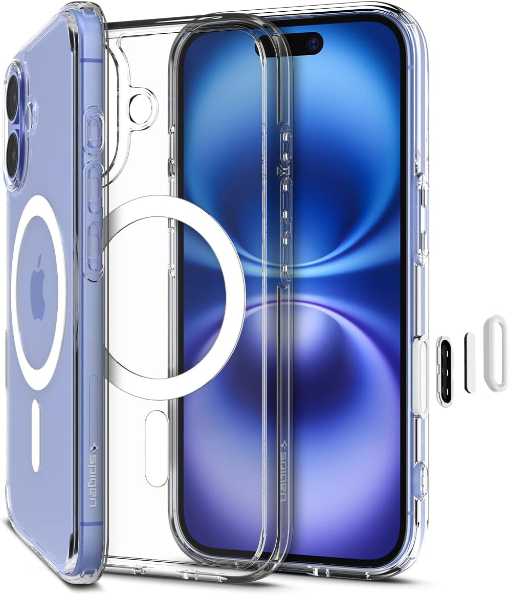 Калъф Spigen за iPhone 16 [Бутон за управление на камерата] Калъф с активирано управление на камерата Ultra Hybrid T MagFit [Против пожълтяване] Бутон за камера Бутон за камера Калъф за мобилен телефон, съвместим с MagSafe - Бял