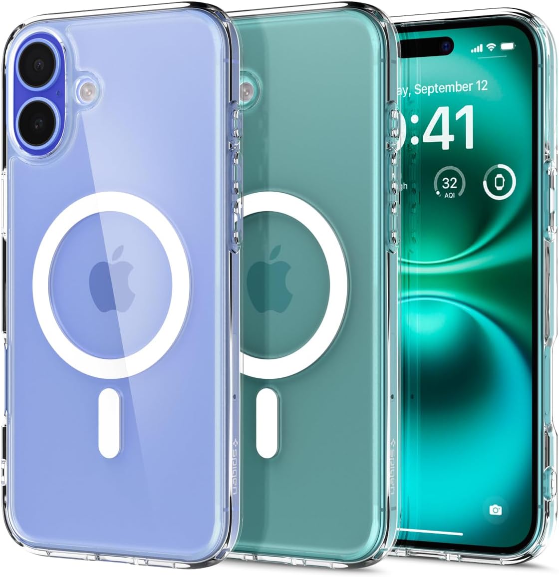 Калъф Spigen за iPhone 16 Plus [Против пожълтяване] Ultra Hybrid MagFit Case, прозрачен, тънък, съвместим с MagSafe - бял