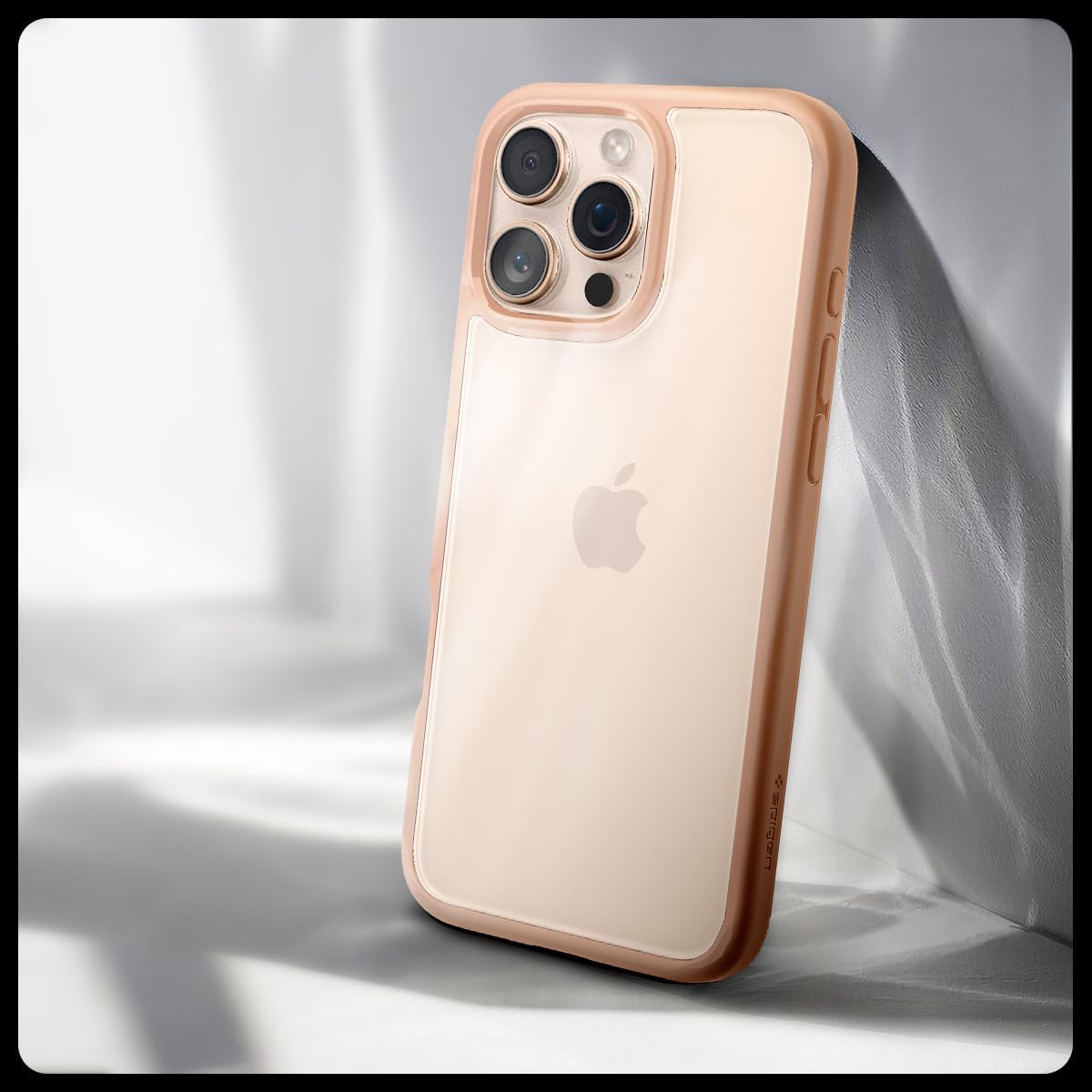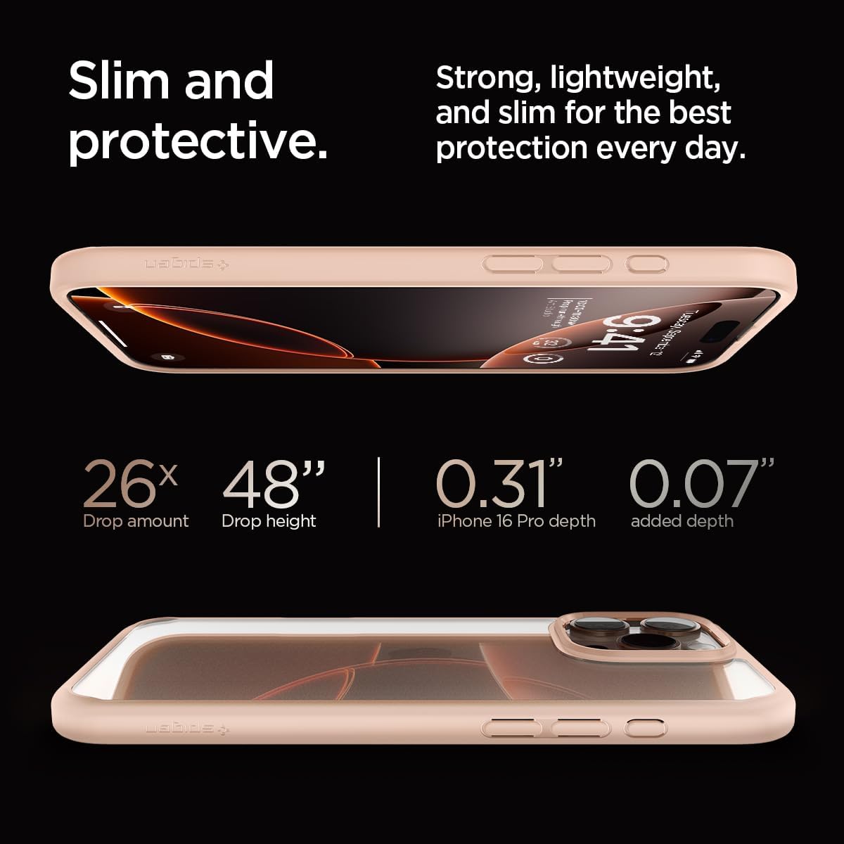 Калъф Spigen за iPhone 16 Pro [против пожълтяване] Ultra Hybrid Case, защитен калъф за мобилен телефон, прозрачен, тънък, розов, титаниев