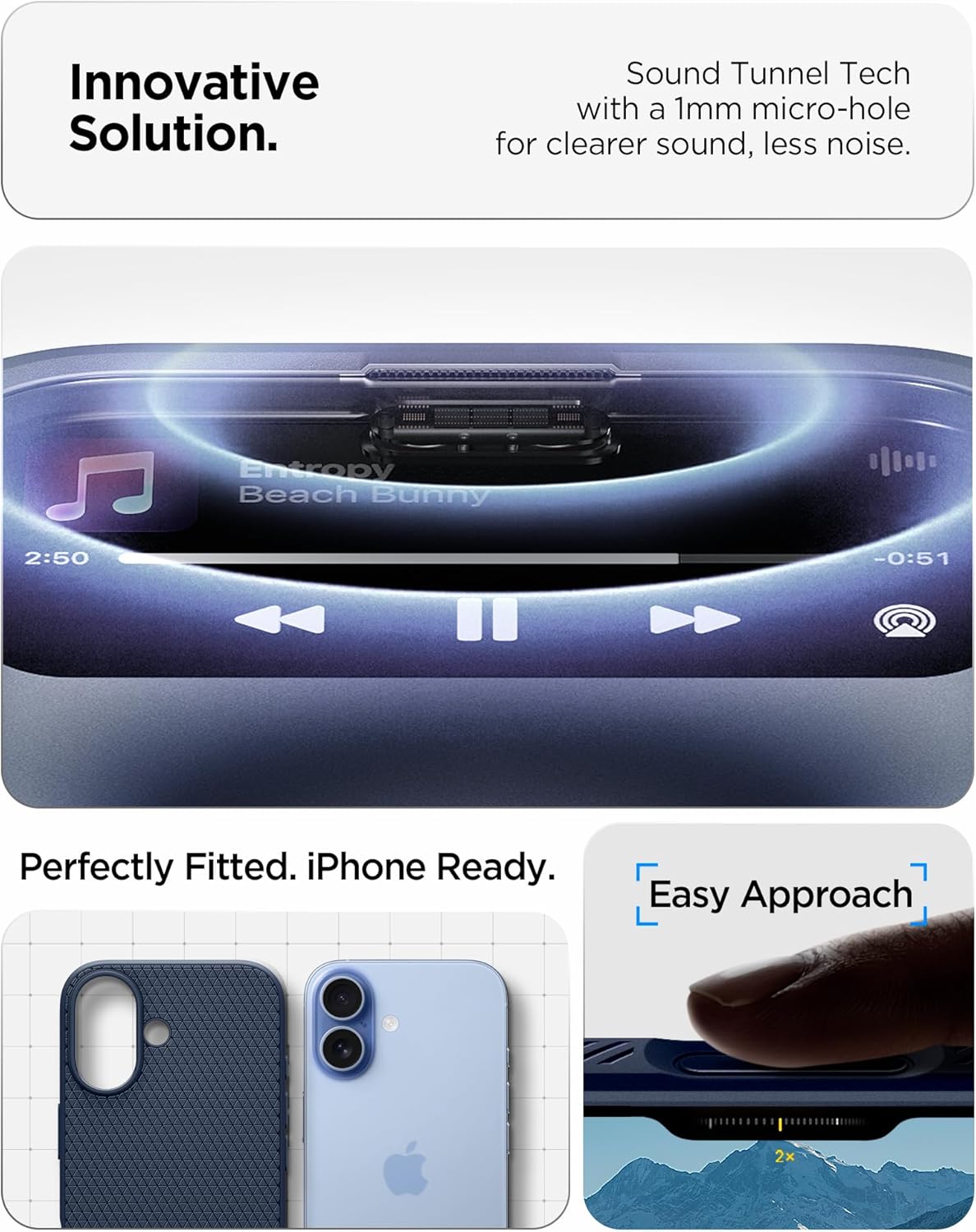 • [Обмислени детайли] Зона на камерата с прецизно прилягащ TPU капак и прецизни изрези, включително тънко покрити TPU бутони на камерата за удобна работа. Вградените звукови тунели също осигуряват ясно качество на гласа.