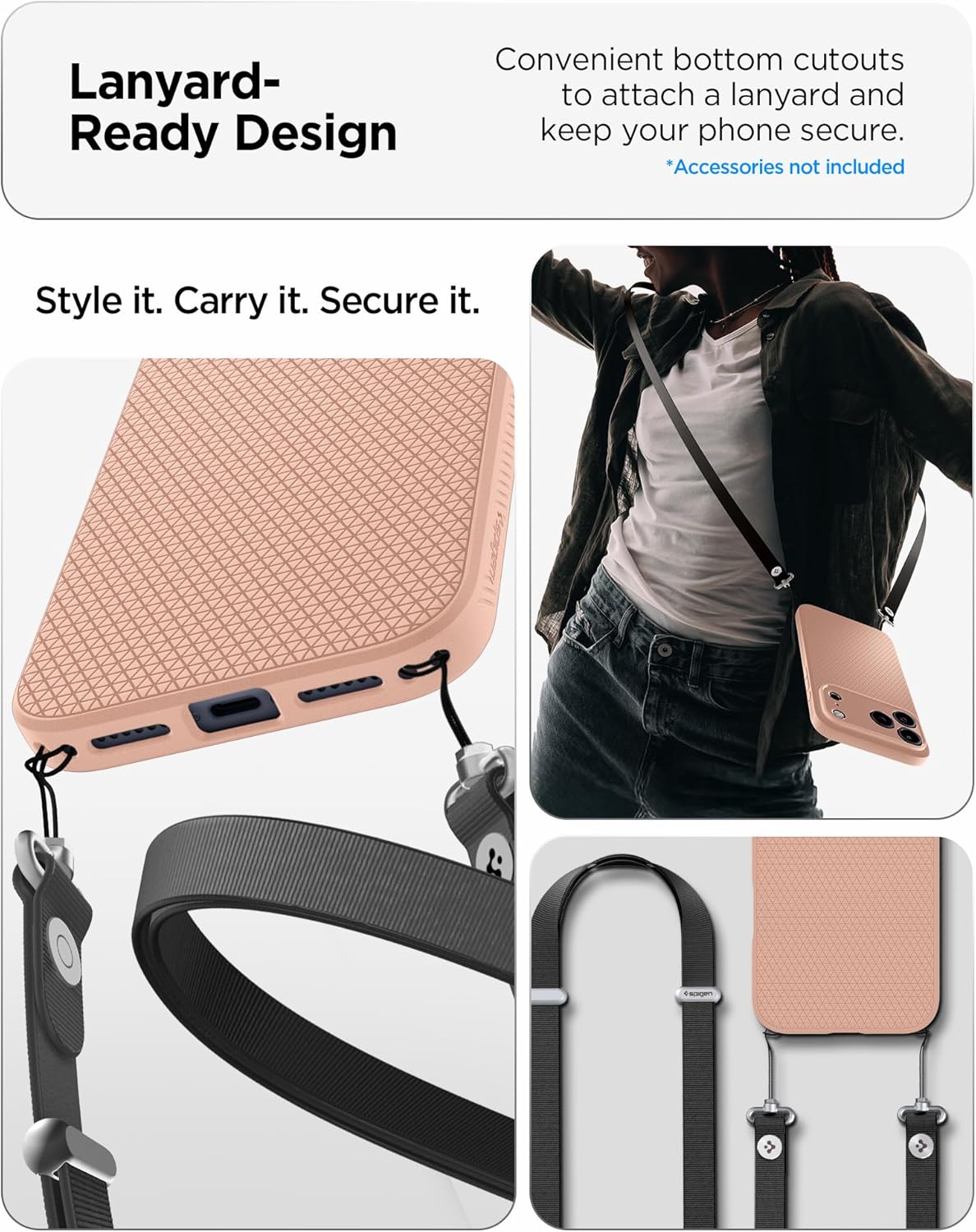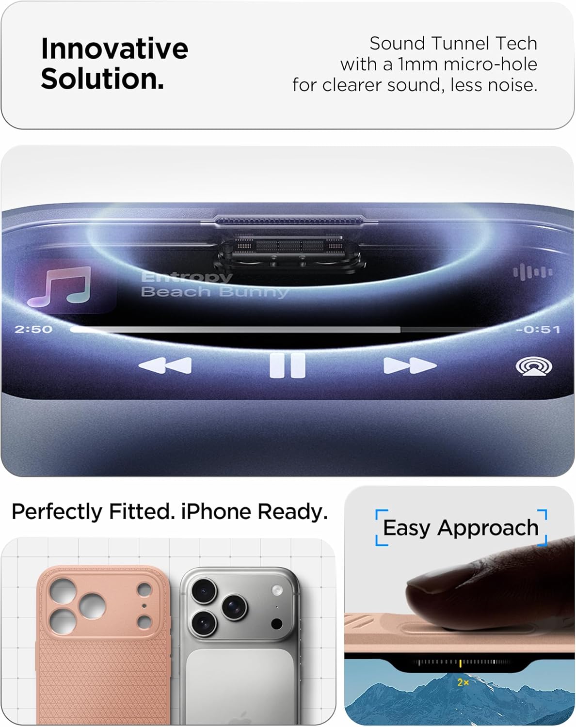 Калъф Spigen за iPhone 17 Pro Max [Неплъзгащ се] [Обмислени детайли] Тънък TPU калъф Liquid Air с Truss дизайн, Военно тествана защита, Технология Sound Tunnel, Калъф за мобилен телефон - Розов Титан