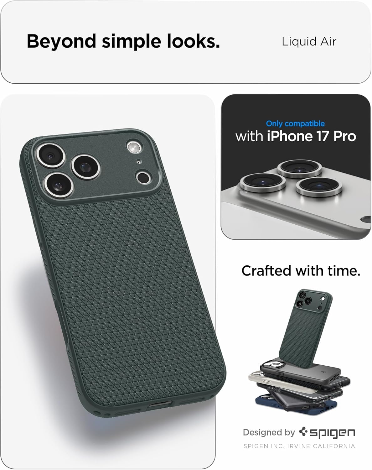 Калъф Spigen за iPhone 17 Pro [Неплъзгащ се] [Обмислени детайли] Тънък TPU калъф Liquid Air с Truss дизайн, Военно тествана защита, Технология Sound Tunnel, Калъф за мобилен телефон - Abyss Green