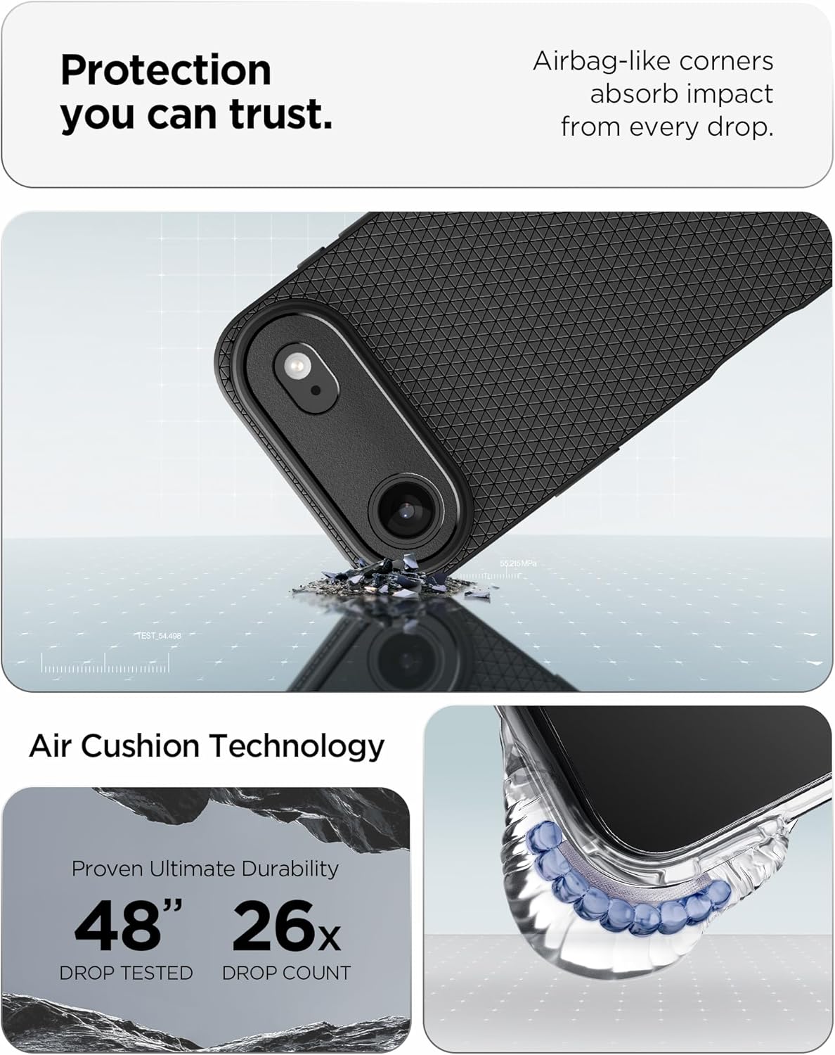 • Технология с въздушна възглавница: патентована технология за защита на ъглите за допълнително абсорбиране на удари - безопасно във всеки ъгъл.