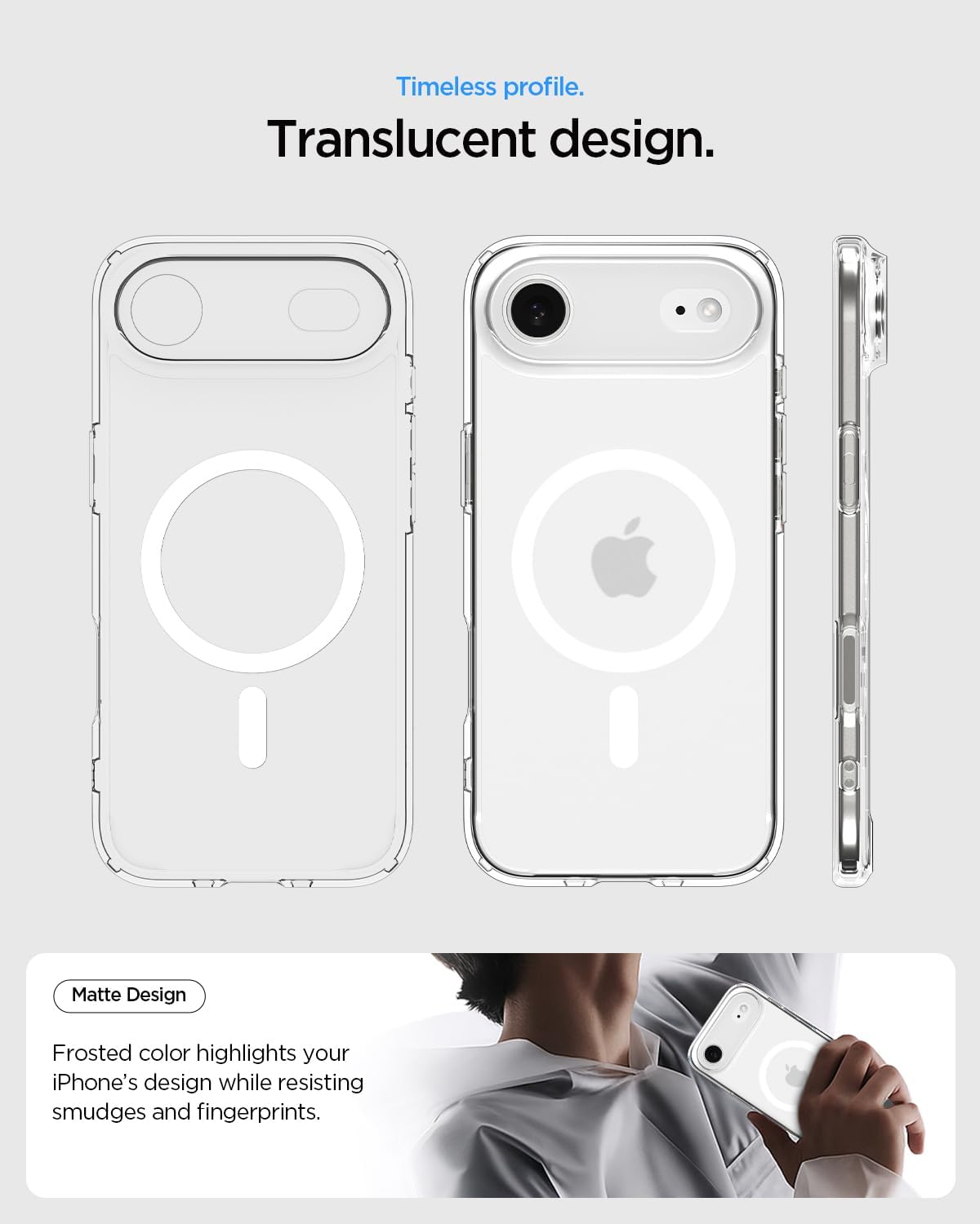 Калъф Spigen за iPhone Air [Spigen Signature] Ultra Hybrid MagFit Case, прозрачен, съвместим с MagSafe, цвят Frost White