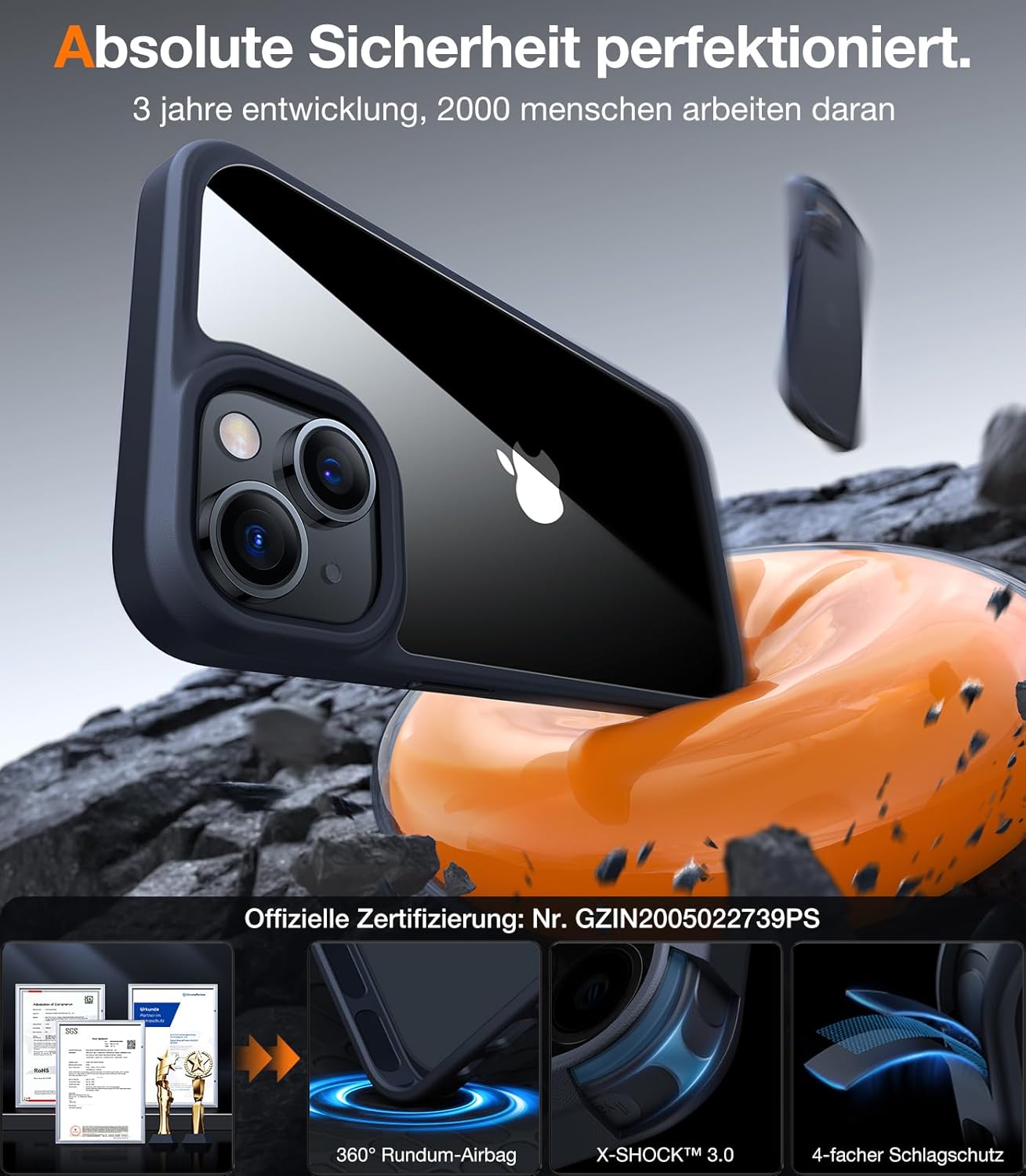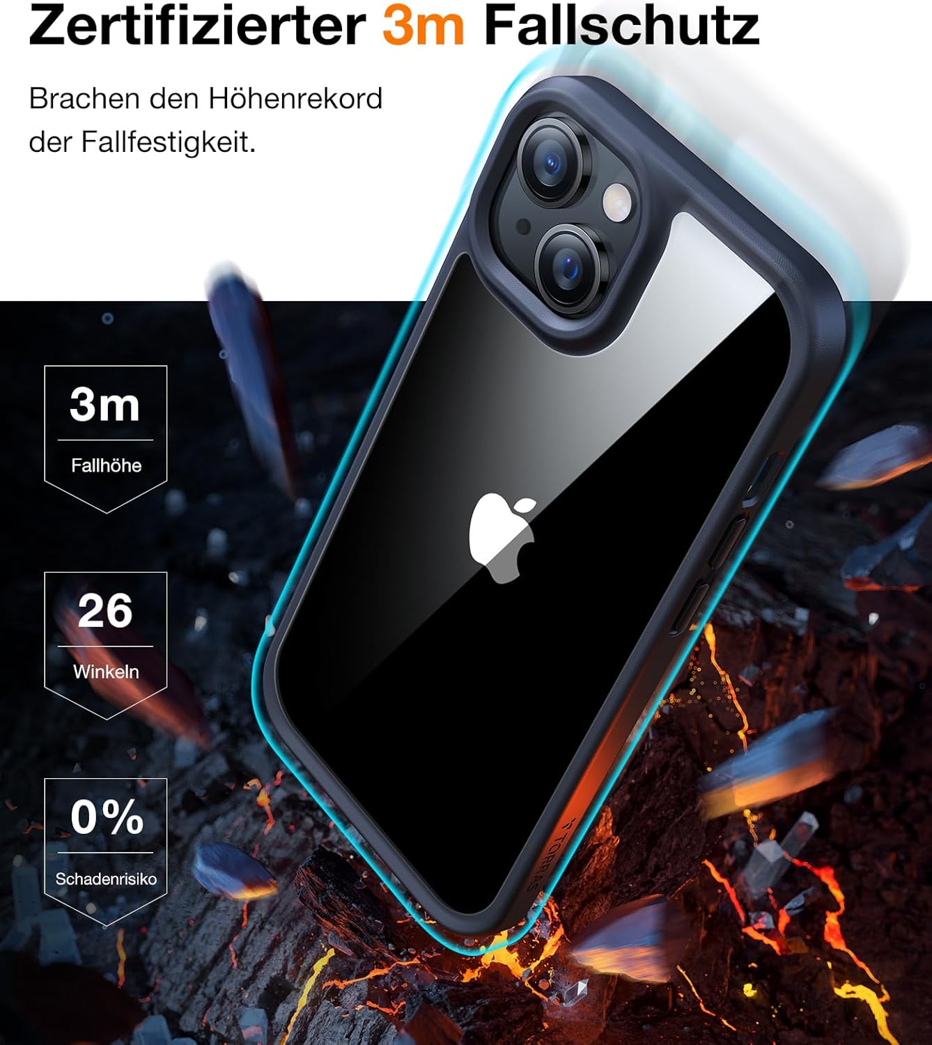 • 360° цялостна защита. Цялостна защита на всички важни детайли. Технологията X-SHOCK 3.0 осигурява особено силна защита за ъгли и ръбове. В същото време, издатината с височина 1,5 мм на екрана и камерата предпазва вашия iPhone от надрасквания и повреди. Тази внимателна грижа прави вашия iPhone 16 Pro уникален.
