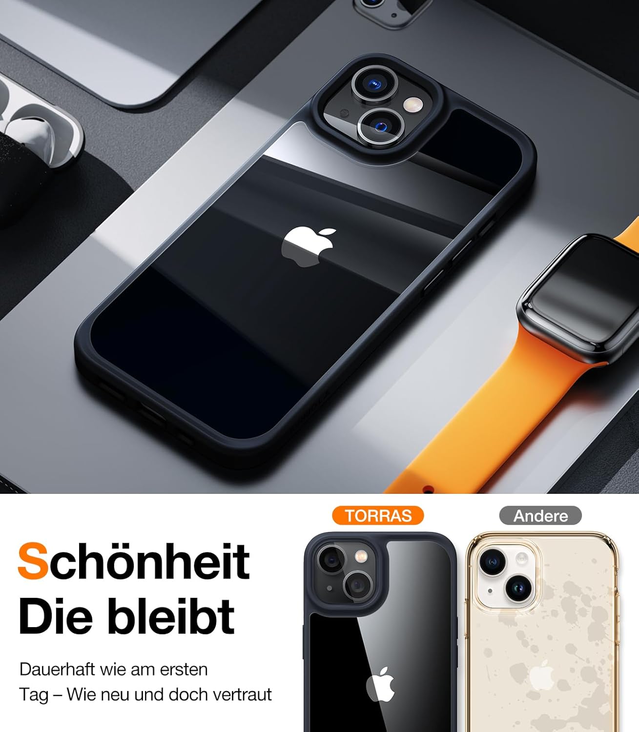 • Безупречна кристална яснота: Този калъф е специално проектиран за iPhone 16 Pro и винаги остава кристално прозрачен. Избрахме висококачествен силиконов материал, който обгръща вашия iPhone 16 Pro като втора кожа и перфектно подчертава оригиналния цвят и тънките линии на iPhone. Така можете да се насладите напълно на красотата на оригиналния дизайн на вашия телефон.