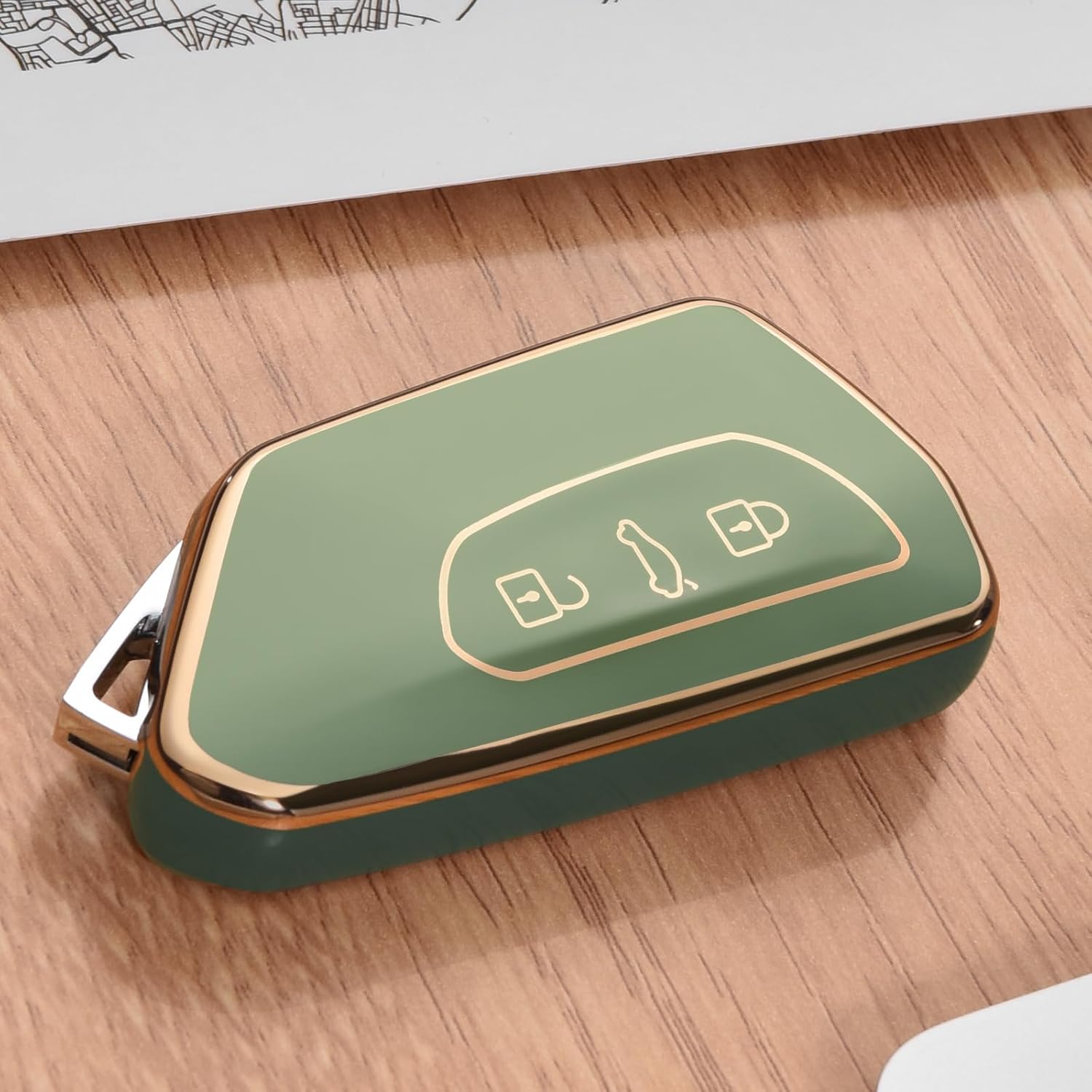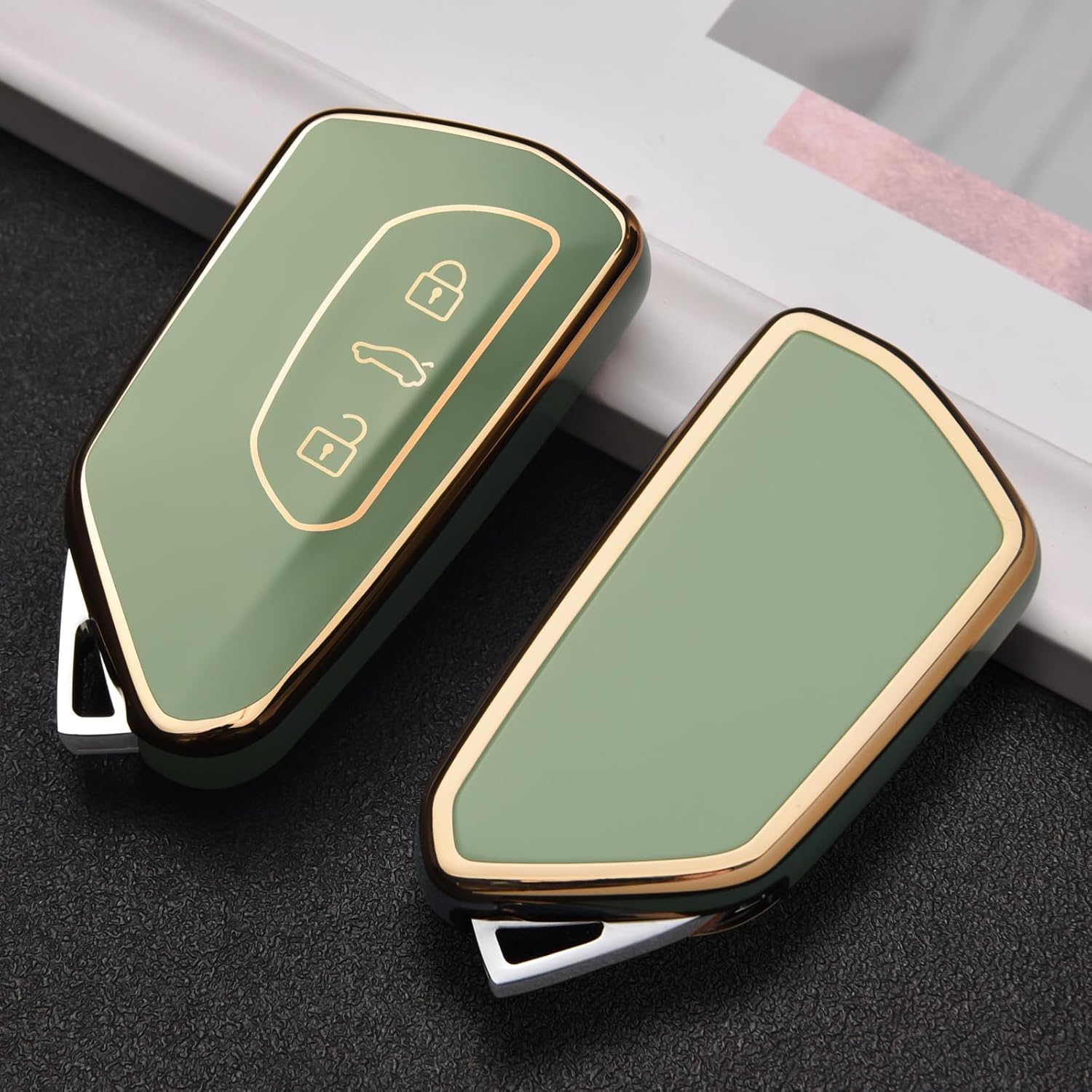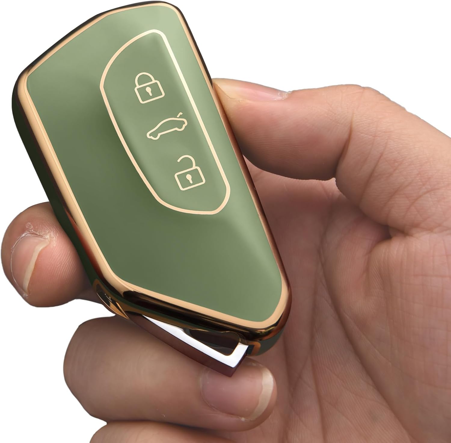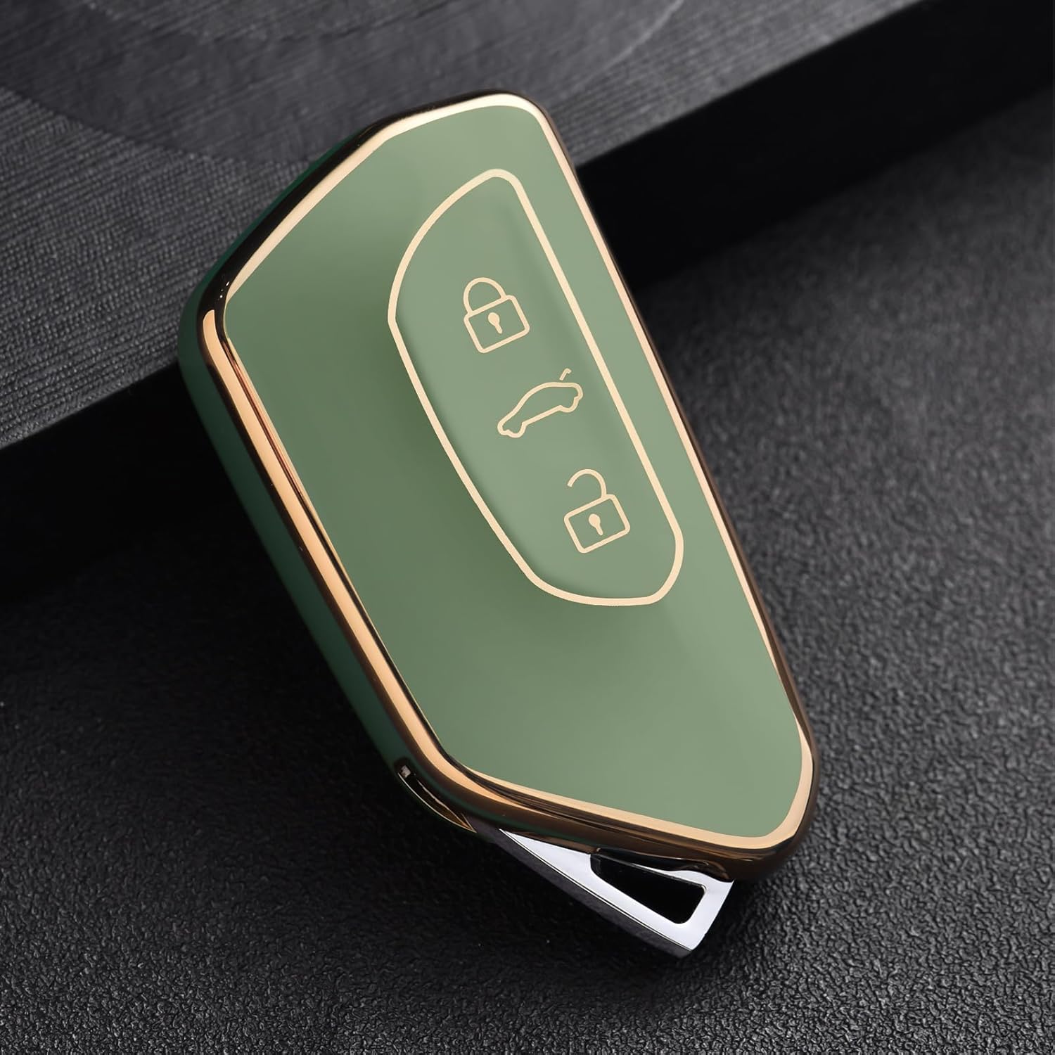 Калъф за автомобилен ключ OATSBASF за VW, TPU силиконов калъф за ключ, съвместим с Golf 8, ID3, ID4, GTI, GTE, Seat Leon MK4, Tarraco, Ateca и Skoda Octavia (златен кант-зелен)