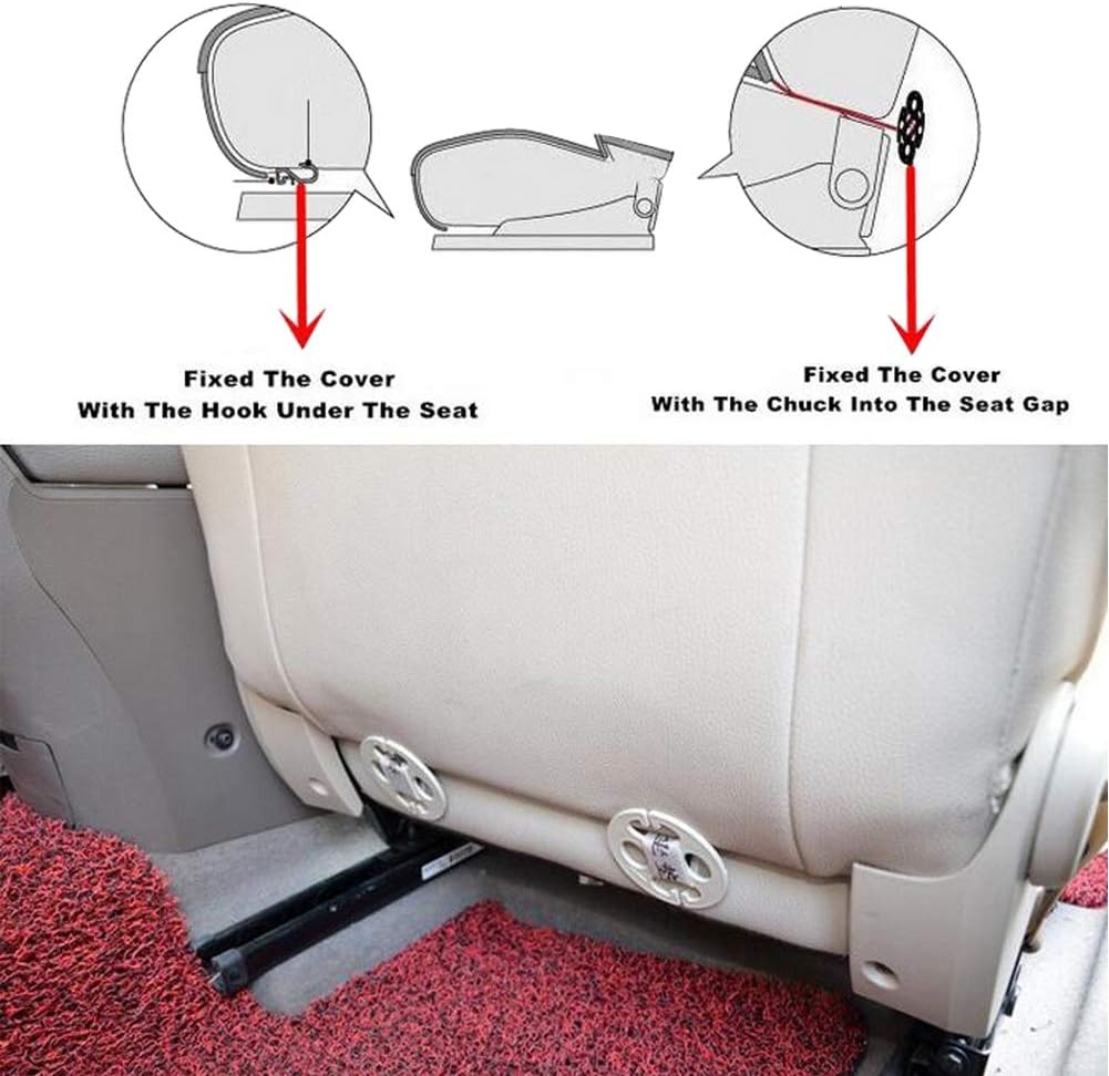 • Противоплъзгащ дизайн - Неплъзгаща се гумена основа, нетоксична. Всеки калъф за предна автомобилна седалка включва 2 пластмасови катарами и 2 метални куки за сигурно закрепване на калъфа към седалката; лесен за монтаж.