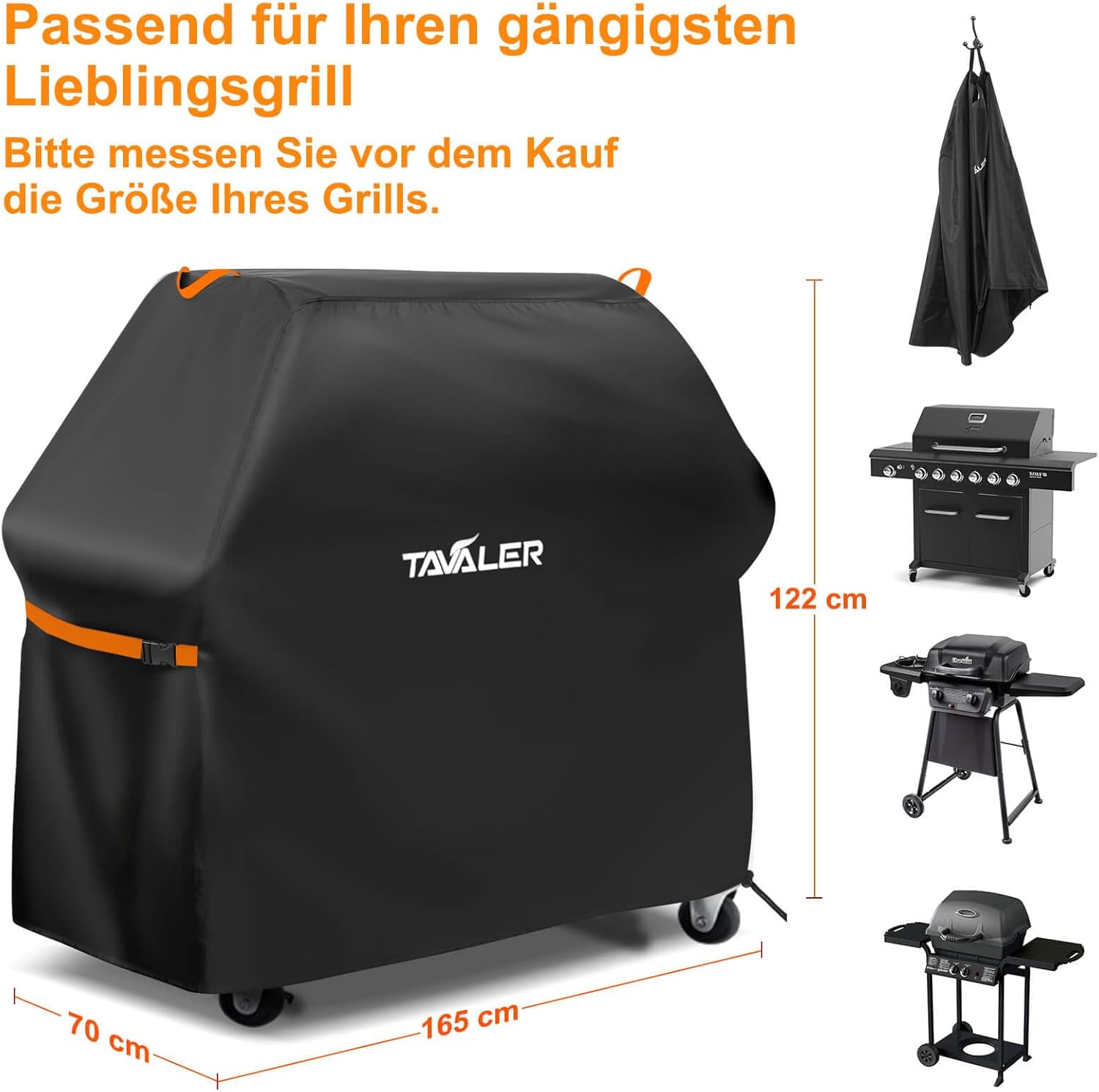 • За любимата ви скара: Благодарение на големите си размери (140 x 65 x 120 см), покривалото за скара Tavaler е устойчиво на атмосферни влияния и е подходящо за най-разпространените марки като , Holland, Jenn Air, Tepro, Brinkmann, Char Broil и Landmann. Моля, измерете размера на вашата скара преди покупка.