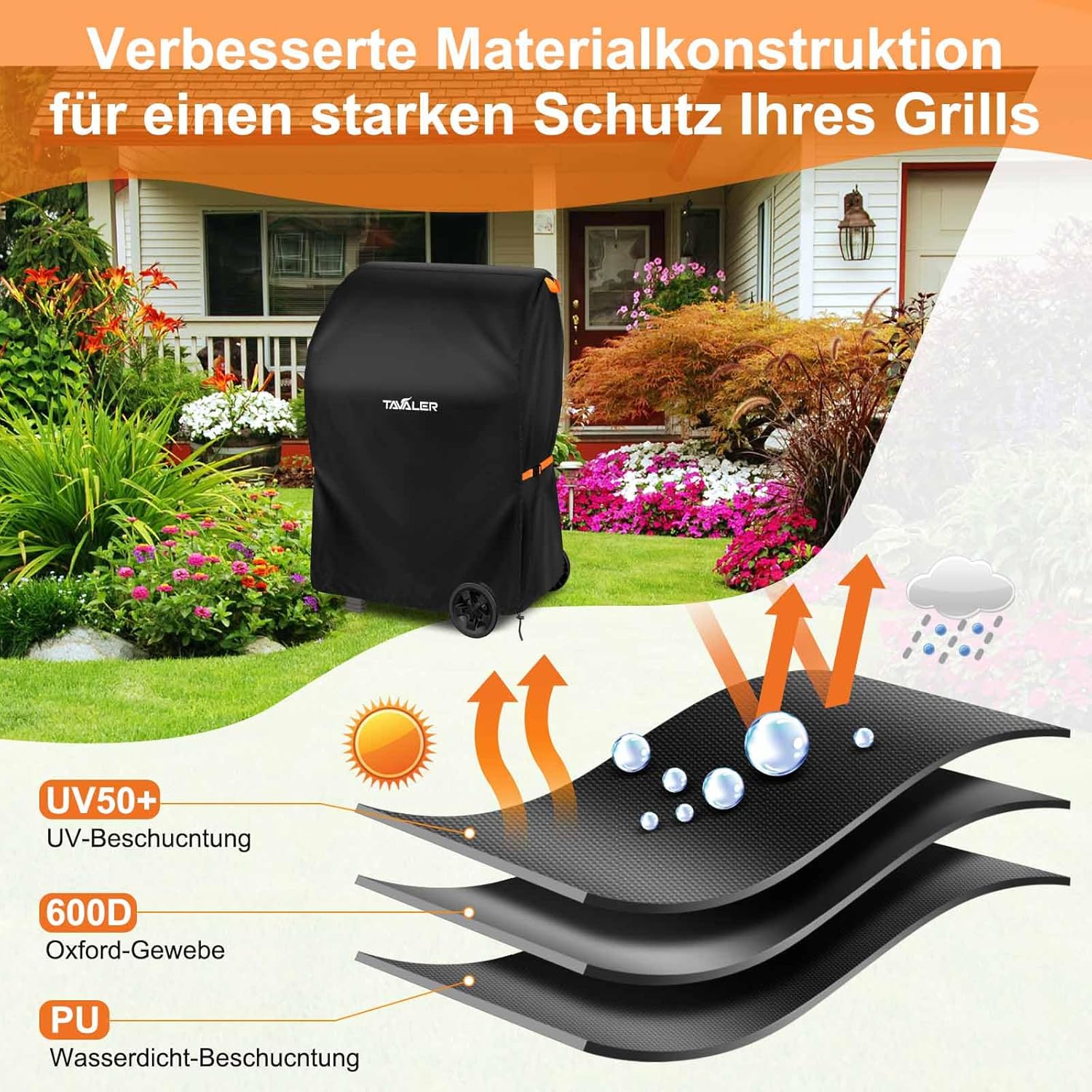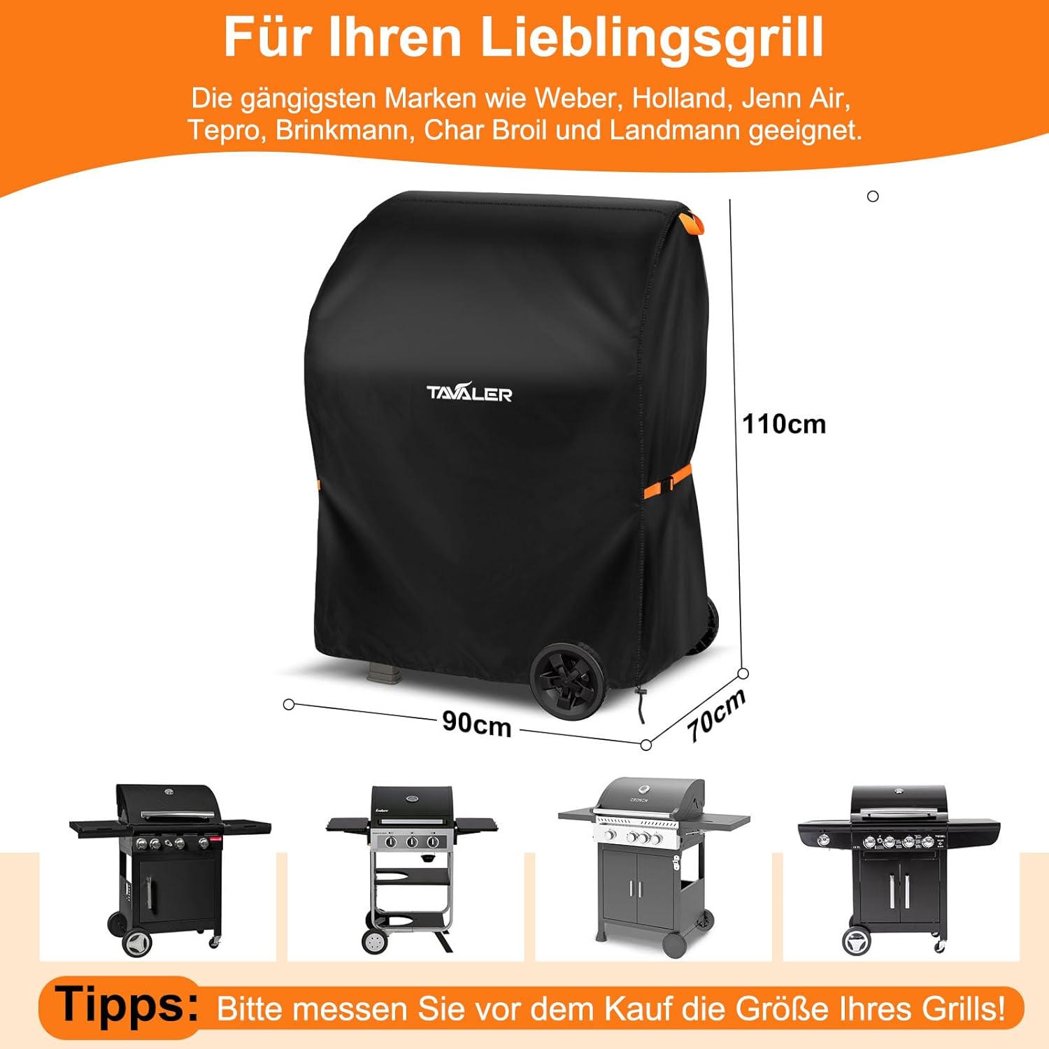 • За любимата ви скара: Благодарение на големите си размери (140 x 65 x 120 см), покривалото за скара Tavaler е устойчиво на атмосферни влияния и е подходящо за най-разпространените марки като , Holland, Jenn Air, Tepro, Brinkmann, Char Broil и Landmann. Моля, измерете размера на вашата скара преди покупка.