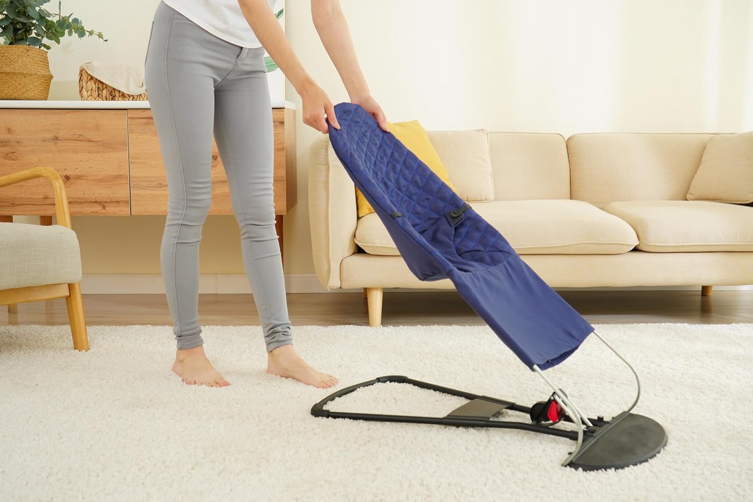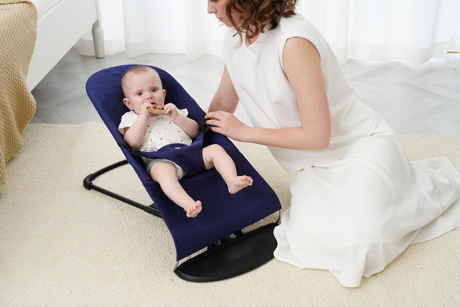 Калъф за бебешки шезлонг. Калъф тип звънец, съвместим с шезлонги BabyBjörn: Balance, Soft и Bliss. Ергономична седалка за бебешки шезлонг. Хипоалергенен ватиран калъф. (Син)