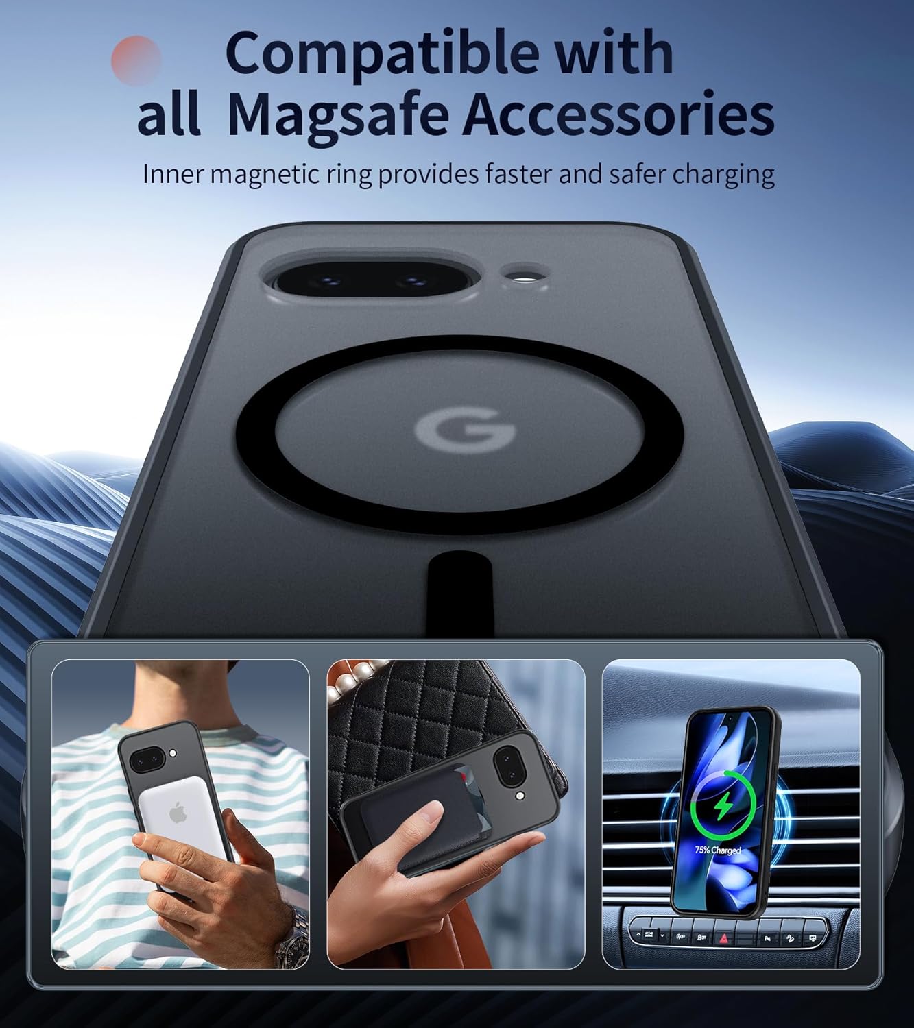 • Силна магнитна сила: мощните вградени магнити в калъфа могат да укрепят магнитната връзка и да осигурят автоматично подравняване, за да направят зареждането с MagSafe по-бързо и безопасно от преди. Съвместим е с всички аксесоари на MagSafe, като портфейл, държач за пръстени и външна батерия. Независимо дали сте в ежедневието или пътувате, винаги можете да се насладите на практичността, която калъфът предлага.