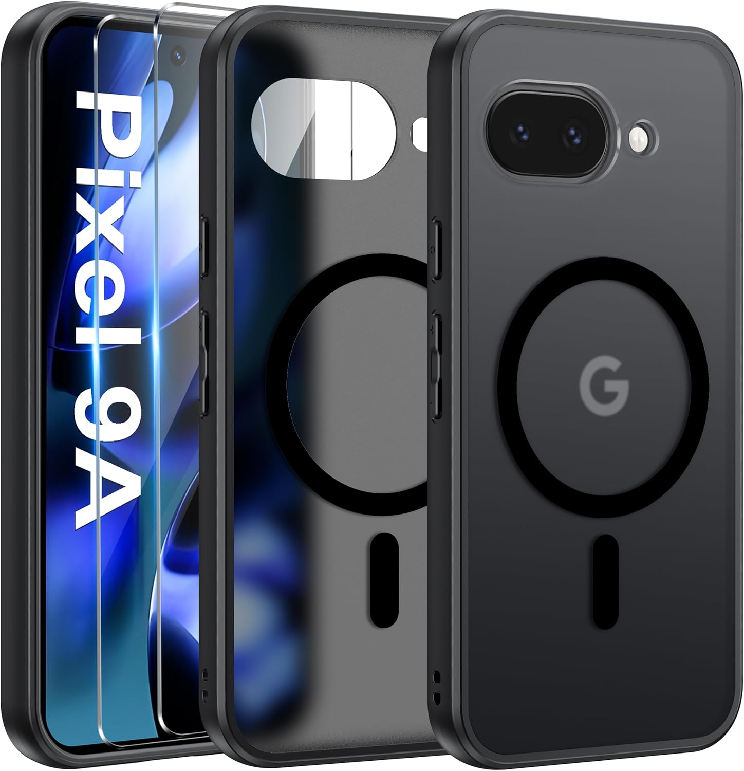 Калъф за Google Pixel 9a, съвместим с MagSafe с 2 протектора за екран, военна стандартна защита, магнитен калъф за мобилен телефон за Google Pixel 9a, удароустойчив, тънък, прозрачен, матов