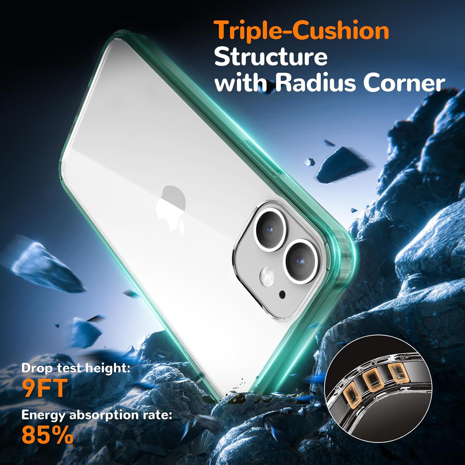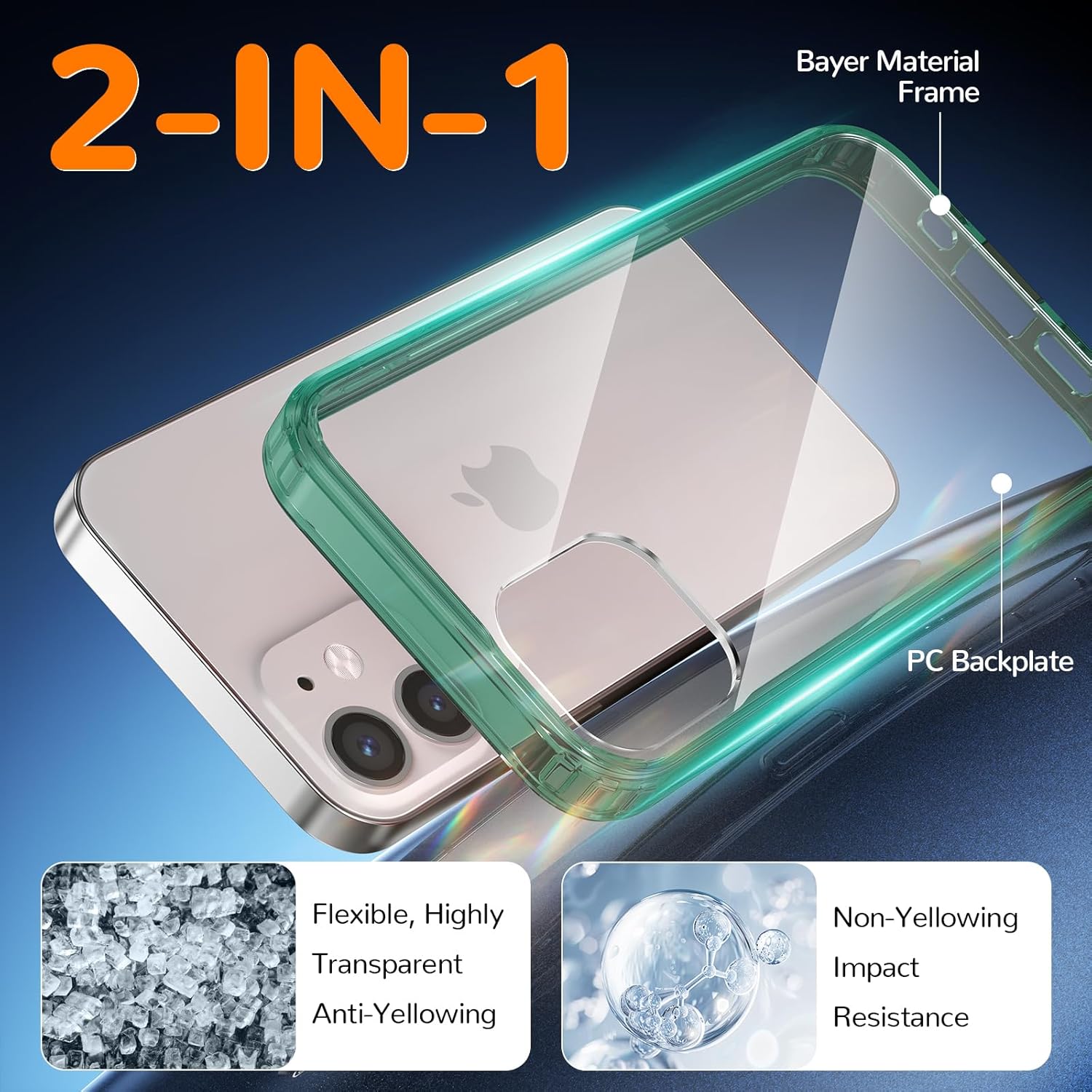 Калъф за iPhone 12 Mini, Прозрачен калъф за мобилен телефон с анти-пожълтяване, Удароустойчив защитен калъф, Висококачествен калъф, устойчив на надраскване, за iPhone 12 Mini - Зелен