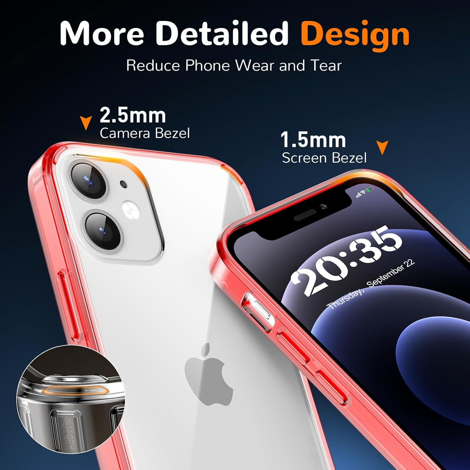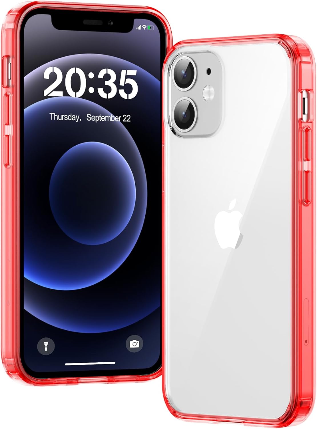 Калъф за iPhone 12 Mini, първокласен прозрачен калъф за мобилен телефон, мек TPU прозрачен, устойчив на надраскване, удароустойчив защитен калъф (червен)