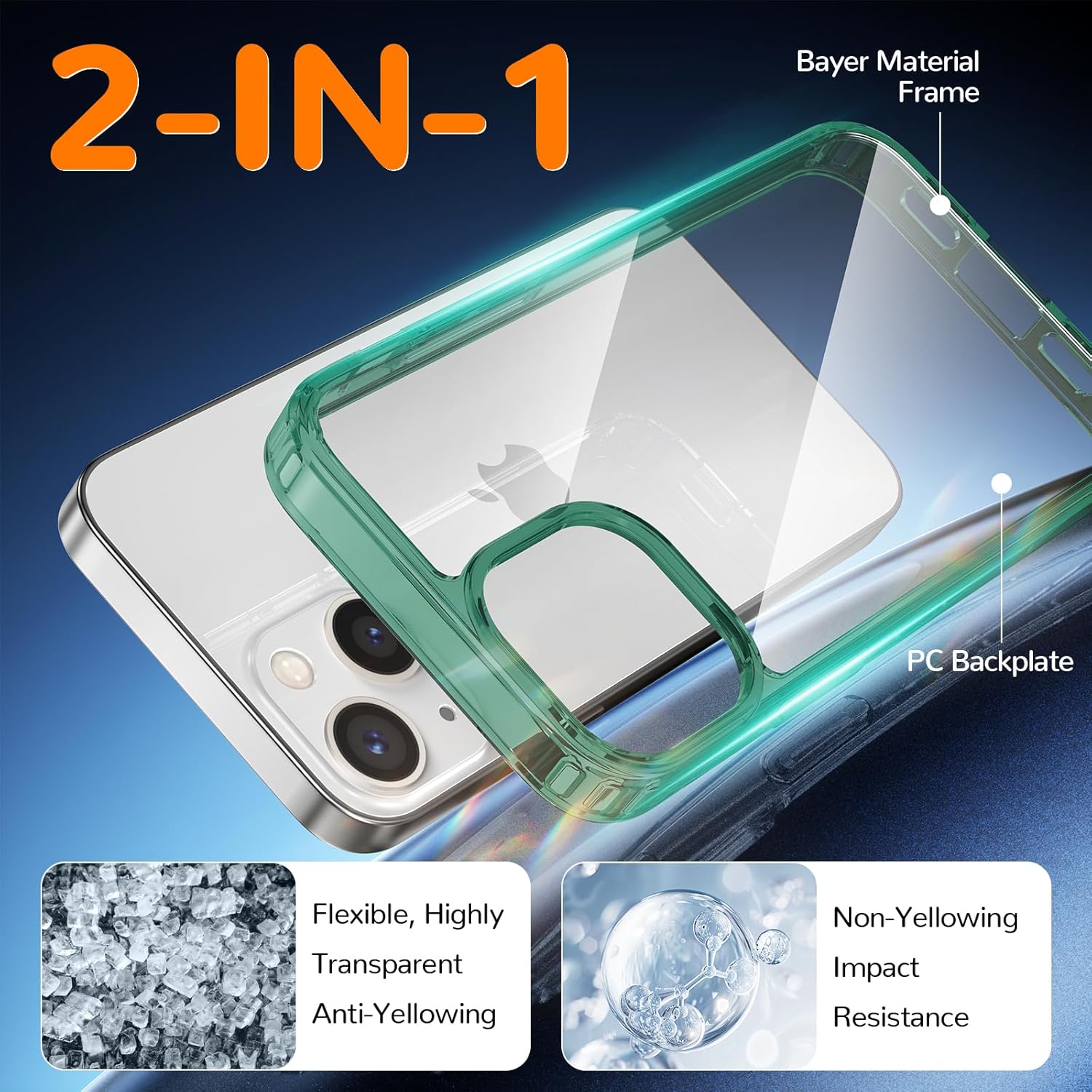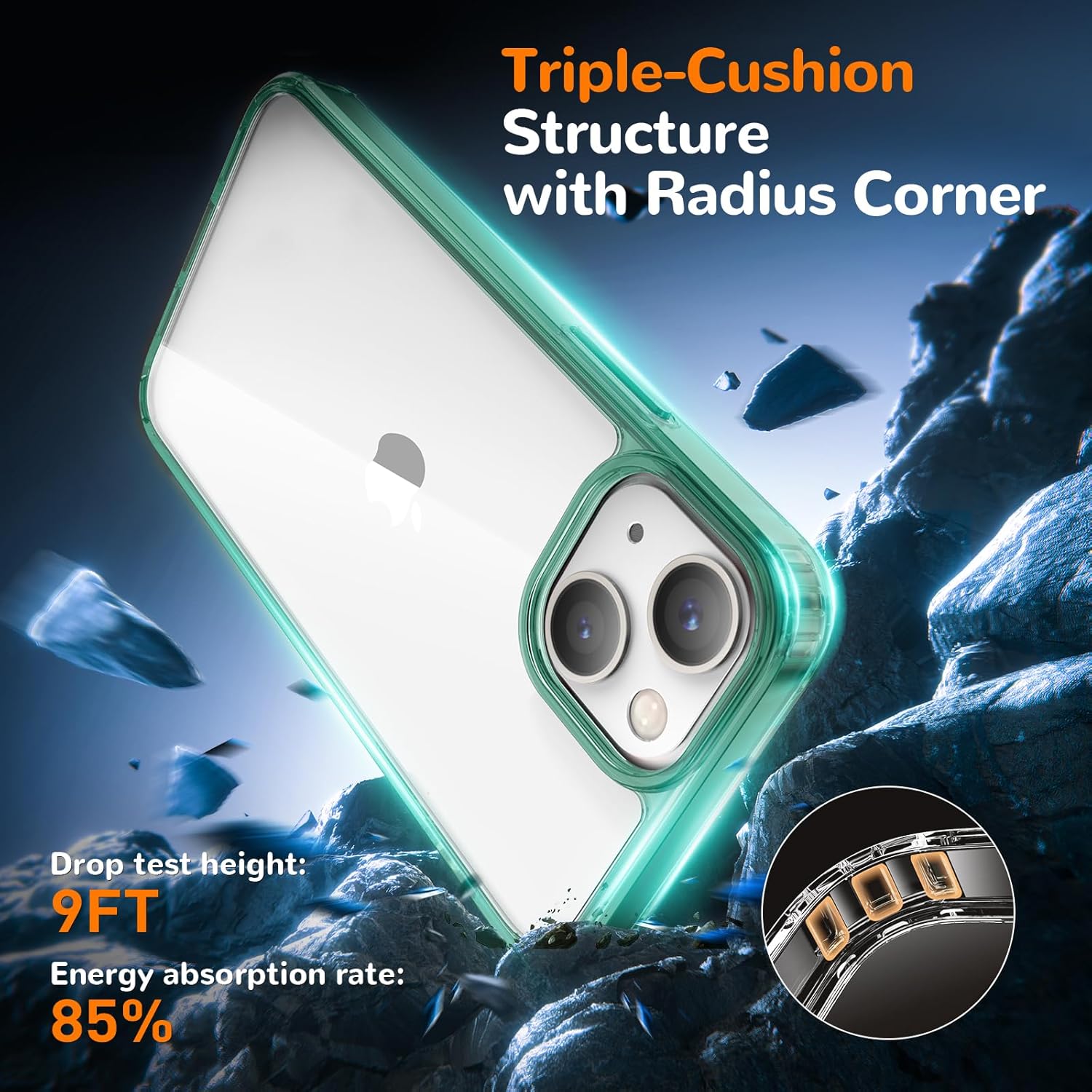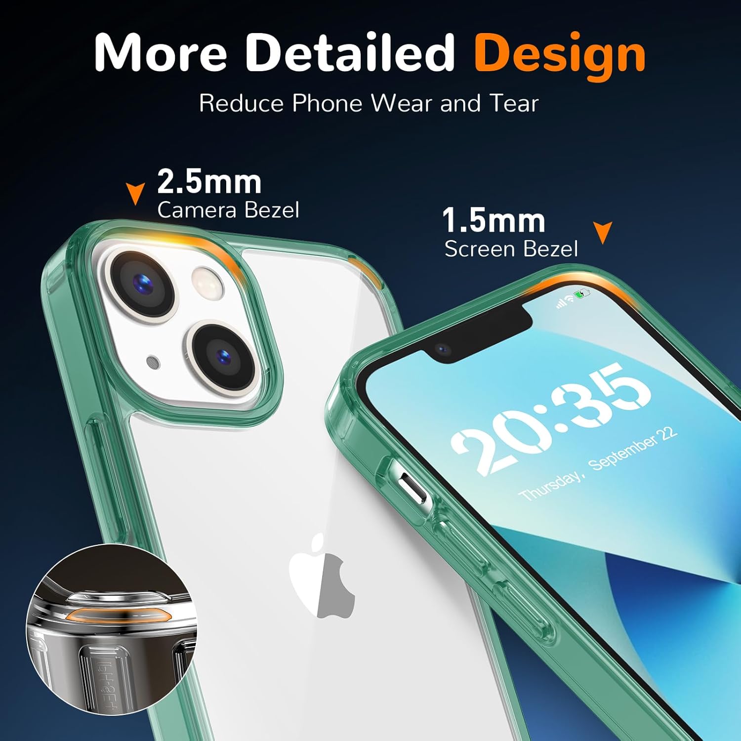 Калъф за iPhone 13 Mini, Прозрачен калъф за мобилен телефон с анти-пожълтяване, Удароустойчив защитен калъф, Висококачествен калъф, устойчив на надраскване, за iPhone 13 Mini - Зелен