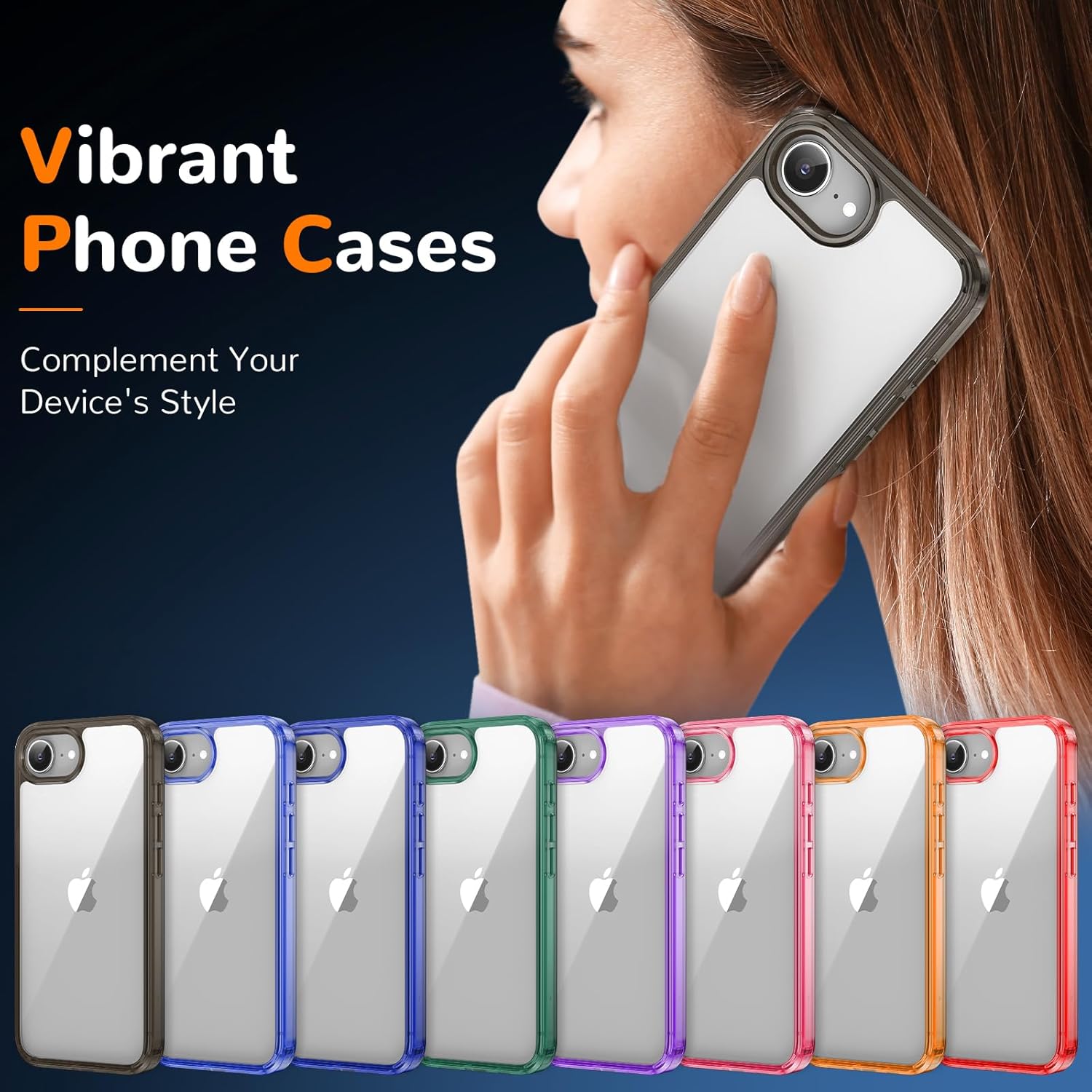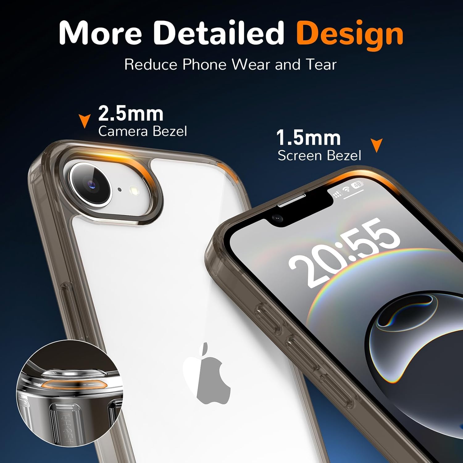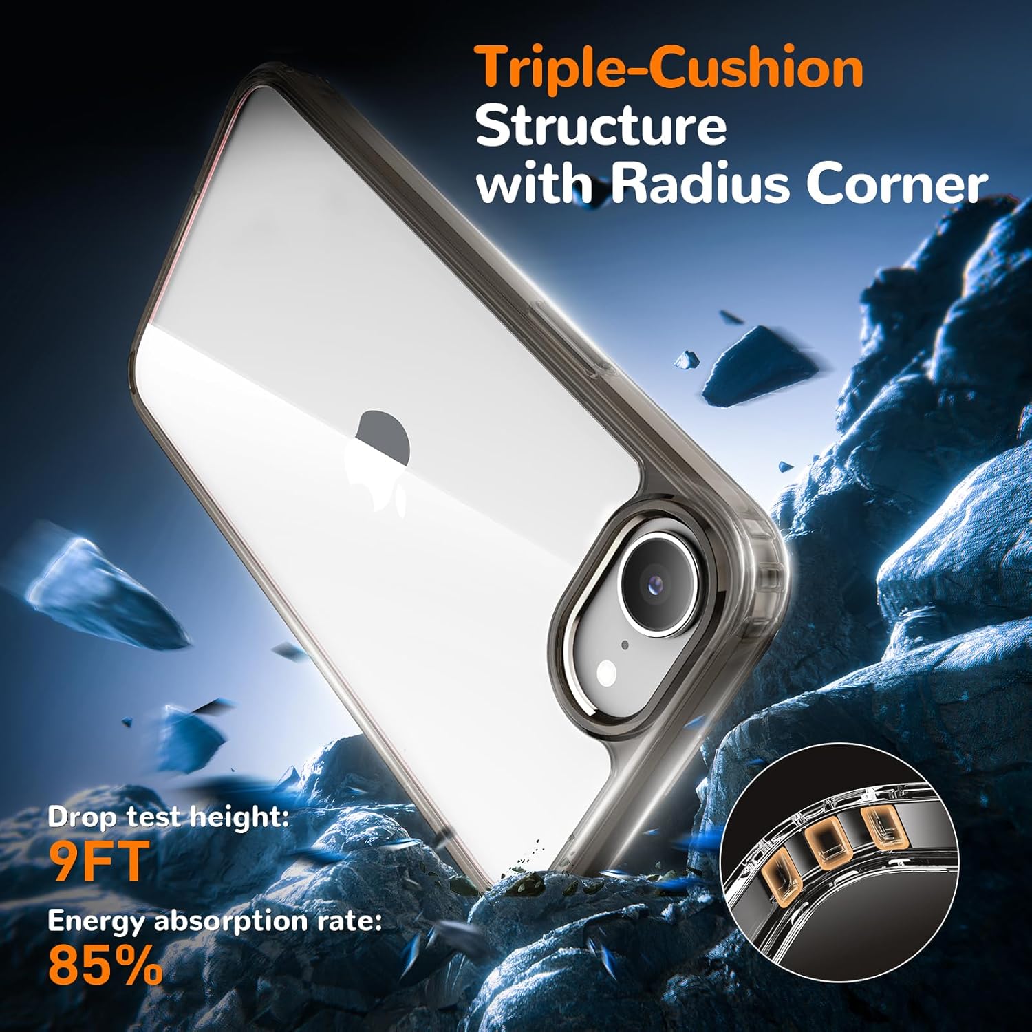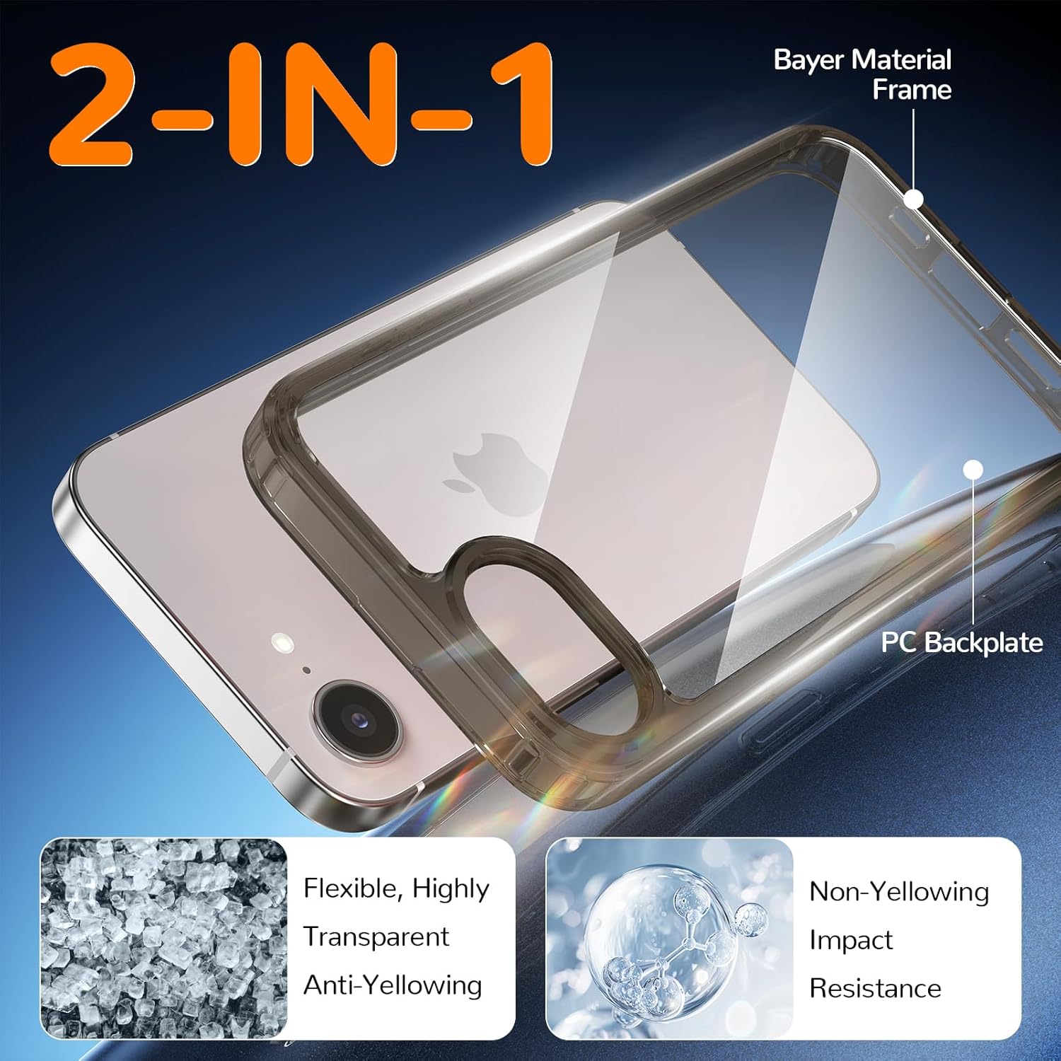 Калъф за iPhone 16E, Прозрачен калъф за мобилен телефон с защита от пожълтяване, Удароустойчив защитен калъф, Висококачествен калъф, устойчив на надраскване, за iPhone 16E - Черен