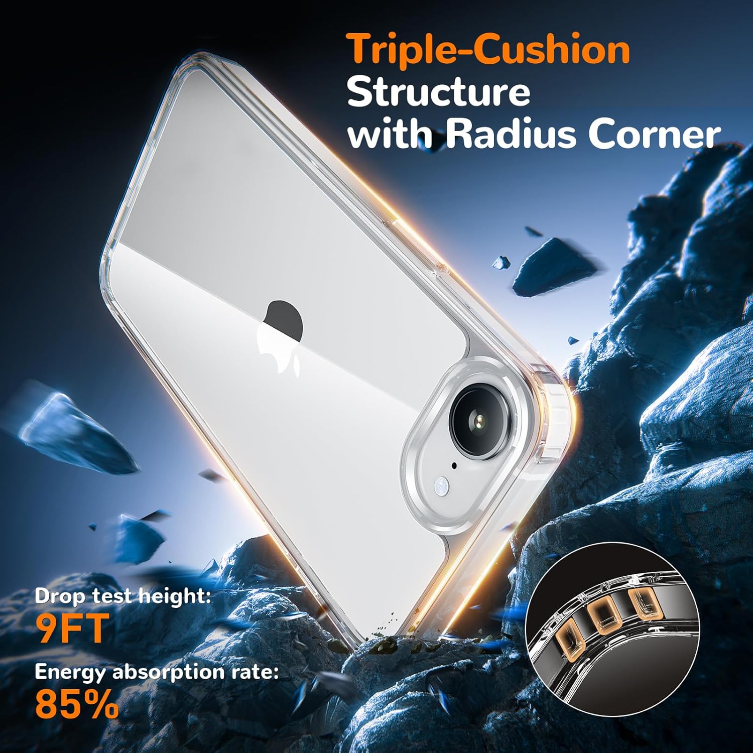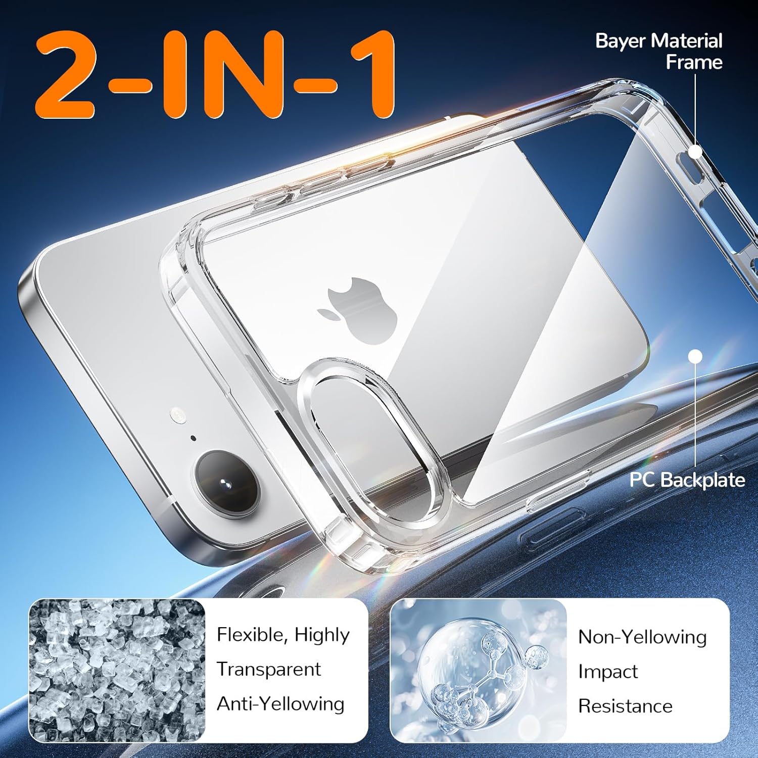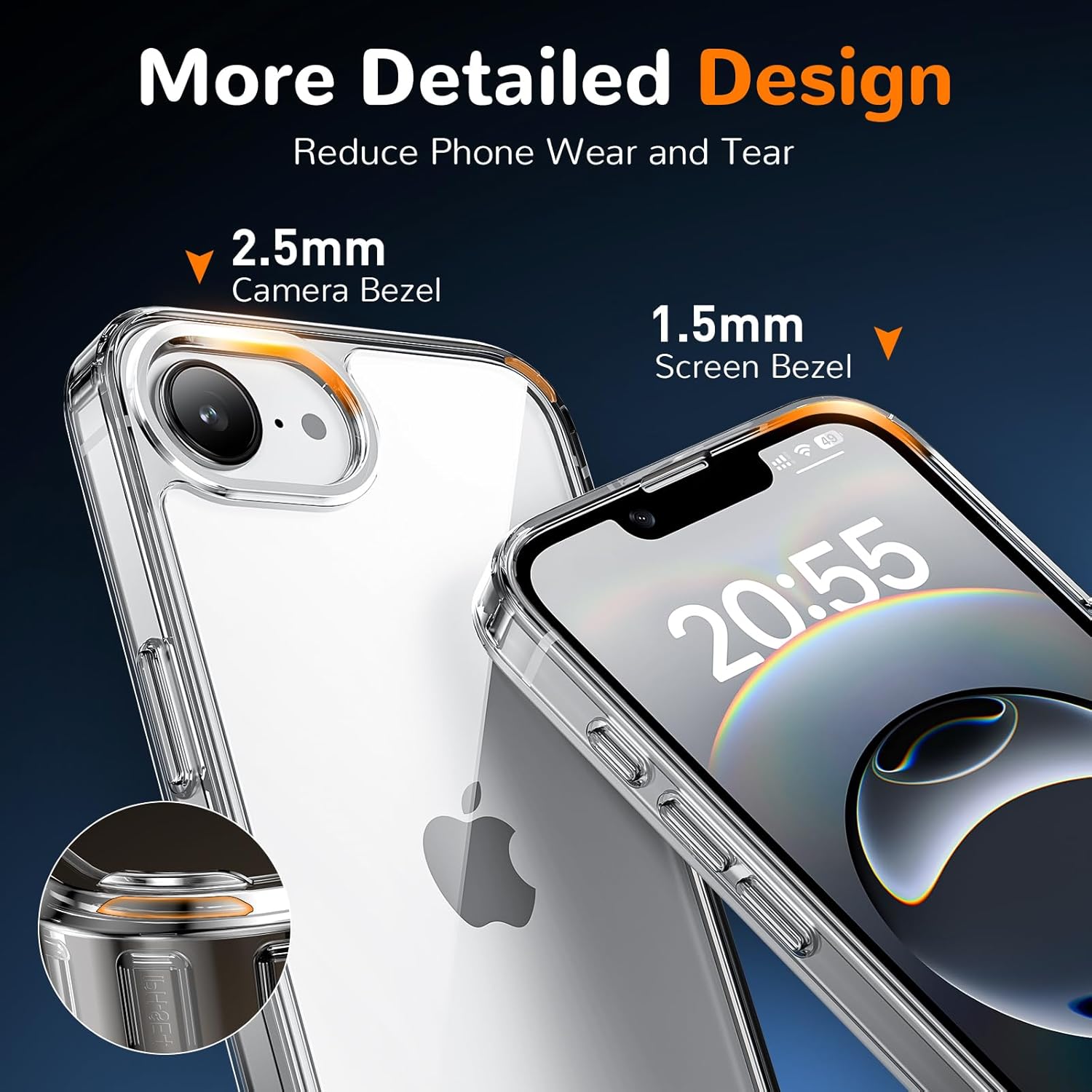 Калъф за iPhone 16E, Прозрачен калъф за мобилен телефон с защита от пожълтяване, Удароустойчив защитен калъф, Висококачествен калъф, устойчив на надраскване, за iPhone 16E - Прозрачен